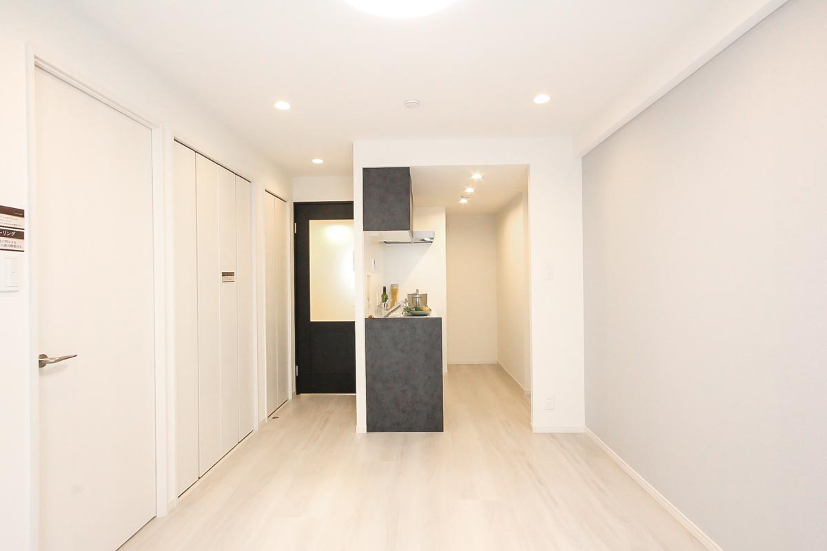 室内はリノベーション済み。リビングは緑道向きで向かいのマンションとも少し距離がありますので日当たりも十分でした。また2重サッシ施工がされていましたので、1階だと気になる湿気や結露も軽減されていると思います。