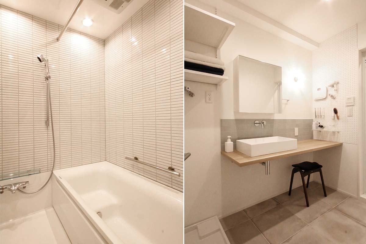 玄関を入って右手には約4.4帖の超大型ウォークインクローゼットに、お風呂はユニットバスではなく広々としたタイル張りの在来、29.2帖のリビングには床暖房付で、冬場の底冷えも気にならなそうです。バーカウンターのような大型ステンレスキッチンにはパントリースペースやワインセラー付きで収納もたっぷり。