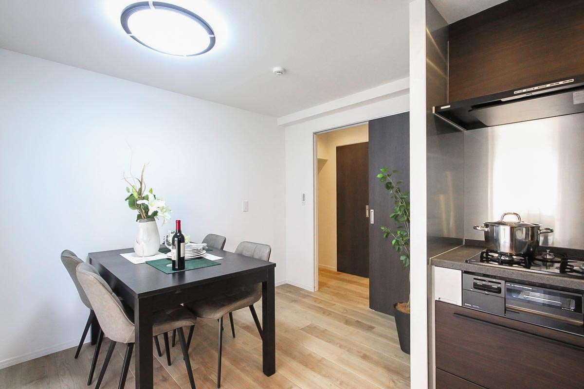 室内はアフターサービス保証の付いたリノベーション済み。96.52㎡の大型3LDKタイプ。ダイニングキッチンがリビングから離れた変則的な間取り、おそらく構造上、取れない壁があるためだと思います。