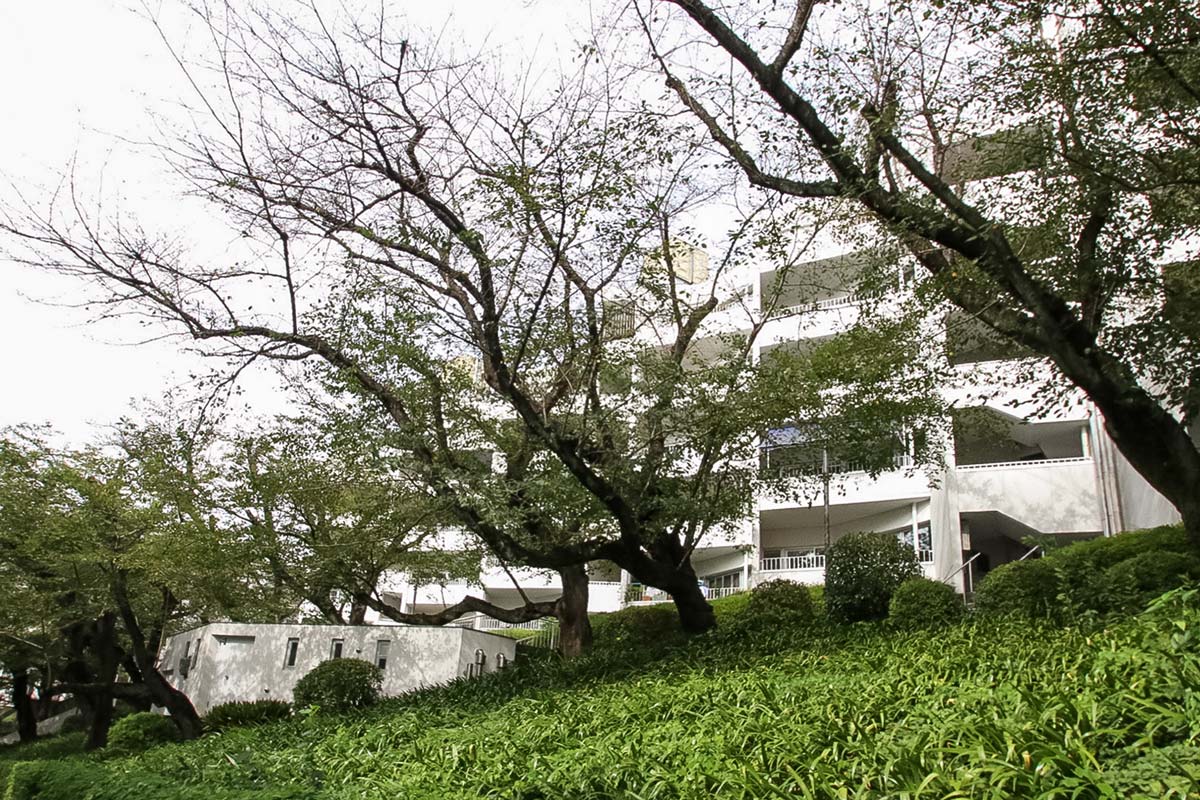 マンションの造りとしては、同じく内井昭蔵氏が設計した「宮崎台ビレジ」や、すぐ近く建っている「桜台コートビレジ」と似た、雁行型のデザイン。豊かな傾斜地に建てられ、4つの棟から形成されています。