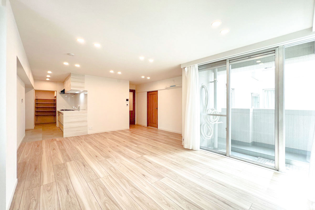 間取りもワイドタイプで廊下部分が少なく、表記以上に広く感じますし、家具の配置がしやすく住みやすいお部屋でした。リノベーションにはアフターサービス保証があり入居後も安心です。