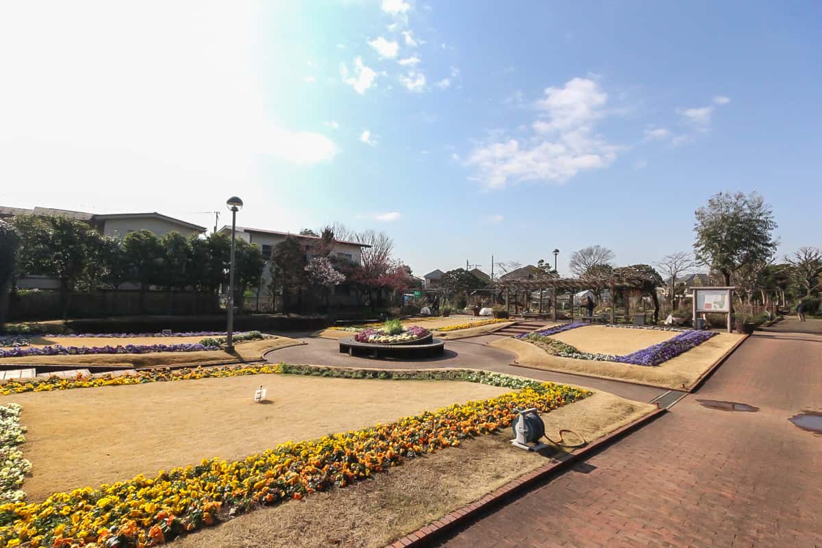 目の前にはフラワーランド。散歩するには最高です。フラワーランドなら、コンビニでパンを買って食べても3割増し!