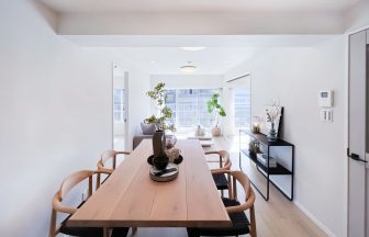 室内はリノベーション済。玄関を入って両サイドに5帖の洋室、その先に15.2帖のLDKと6帖の洋室。リビング横の扉を開けて約21帖の広々としたリビングとしてもお住まい頂けます。大きな窓から光が差し、リビングから専用庭へと更に広がりを感じます。