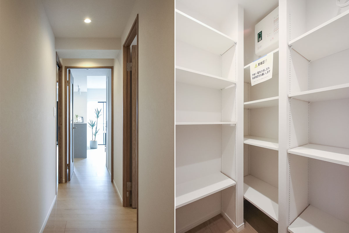 お部屋は3階部分、79.22㎡の3LDKタイプ。リビング横5.4帖の洋室は3枚の開き戸で間仕切りされていますので、写真のように扉を開けて約22.8帖の2LDKとしてもお住まい頂けます。
