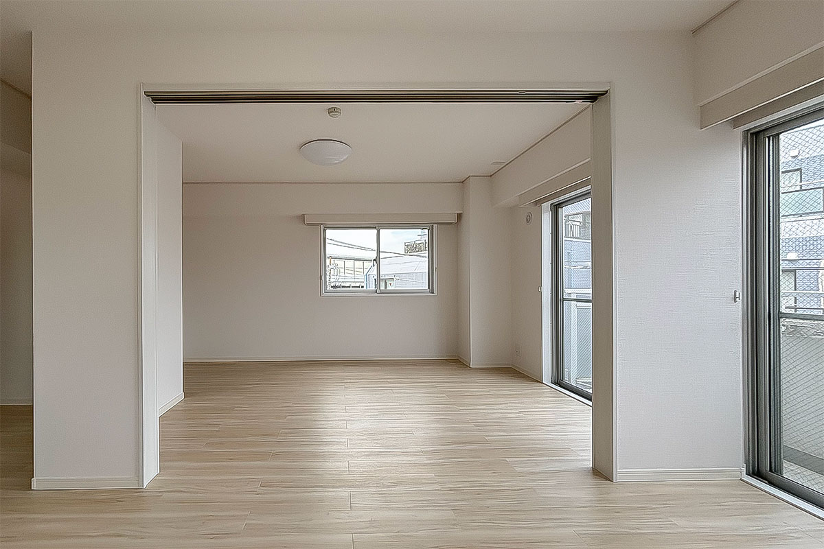 6.7帖の洋室はLDKとの間に仕切りが無いので、開放的な明るい空間になっていました。風通しも良かったです。