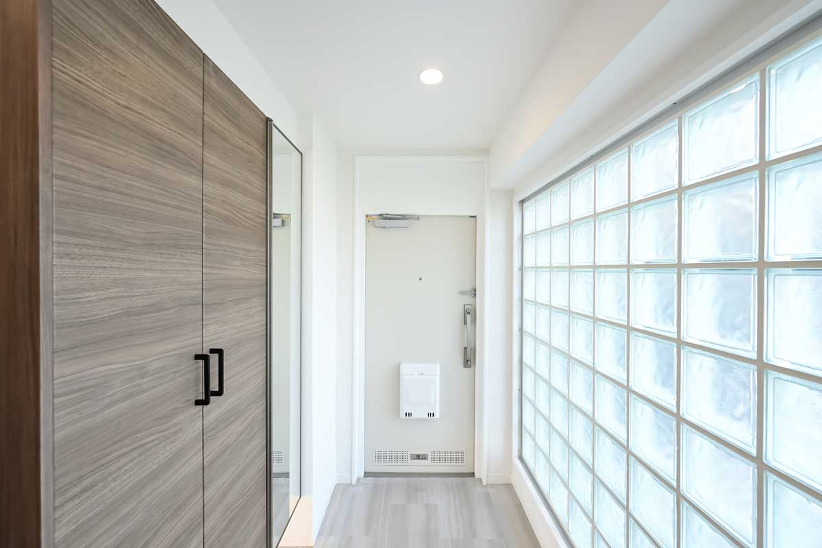 玄関ドアの外側と内側に、はめごろしの窓があり、鍵を出す手元や、室内の足元も廊下も明るく照らしてくれたりと、明かり取りが工夫されているのも特長です。広くて明るいと、気持ちにもゆとりが持てそう。ゆったりと暮らすことができそうです。