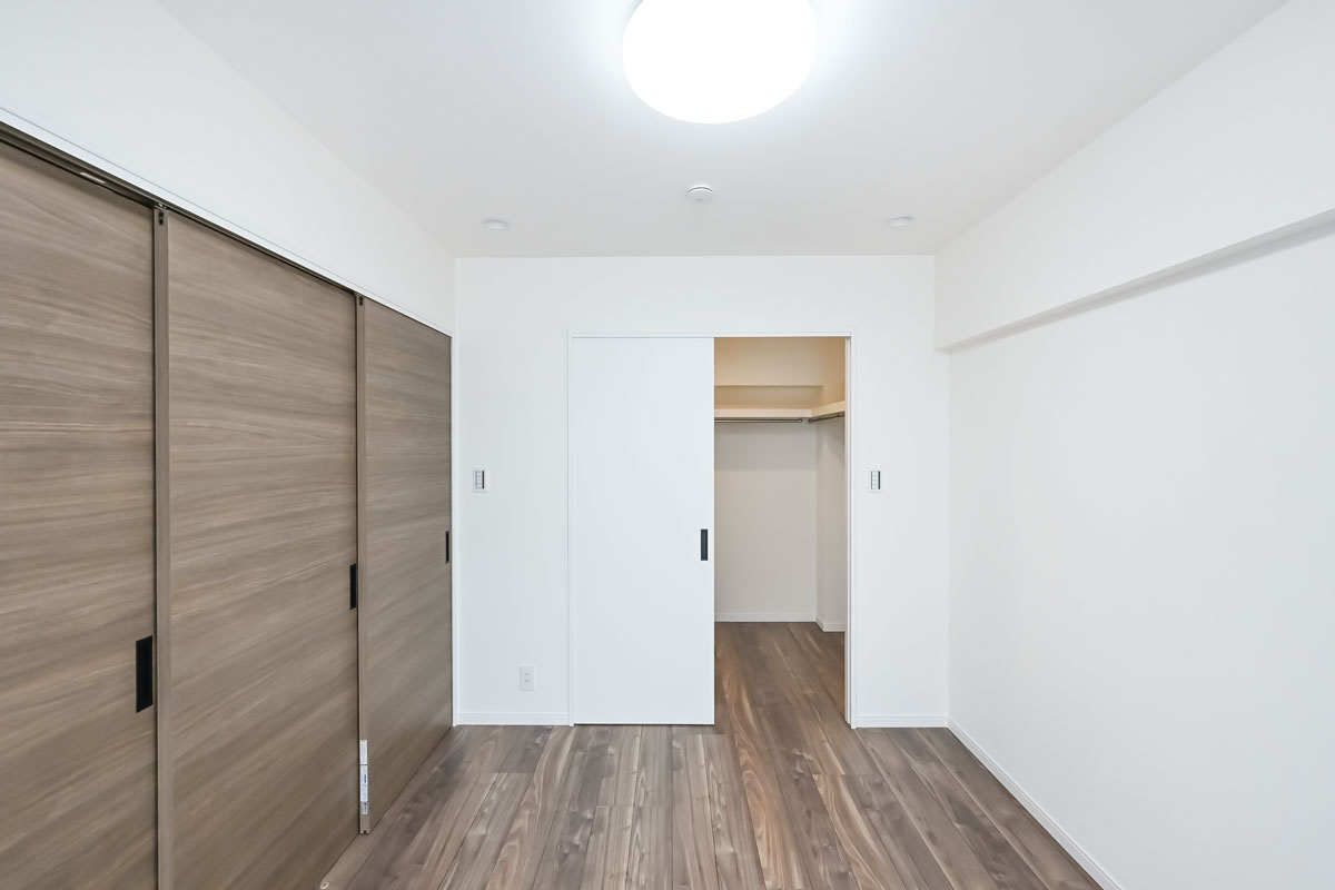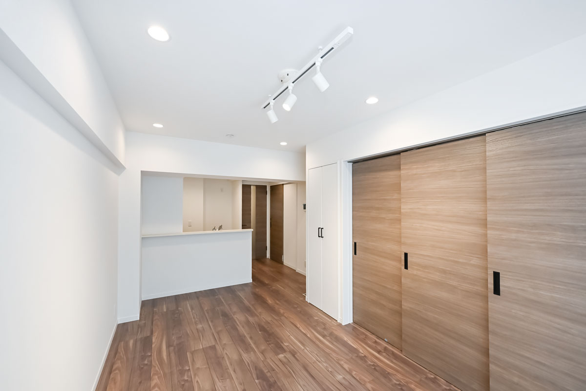 マンションが建ち並ぶ一画ですが、バルコニー前面の建物とは距離があるため、日ざしも入りますし、空を眺めることもできます。天井、壁のクロスとフローリング、建具も交換済みですので、居室は快適そのもの。サニタリーエリアも、しっかり広さがあり、使いやすそうと感じました。
