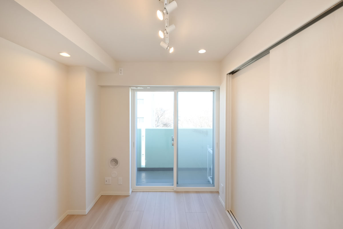 日当たりの良いバルコニーの窓は二重サッシになっていて、甲州街道の走行音もかなり軽減されていました。