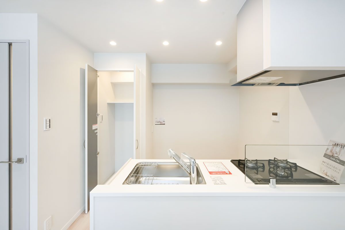 設備面では、シンクまわりがすっきりとする浄水器一体型水栓を採用したシステムキッチン、換気乾燥暖房機能・追炊機能付きのバスルーム。防犯面ではモニター付きインターホン・共用部の防犯カメラが設置されています。