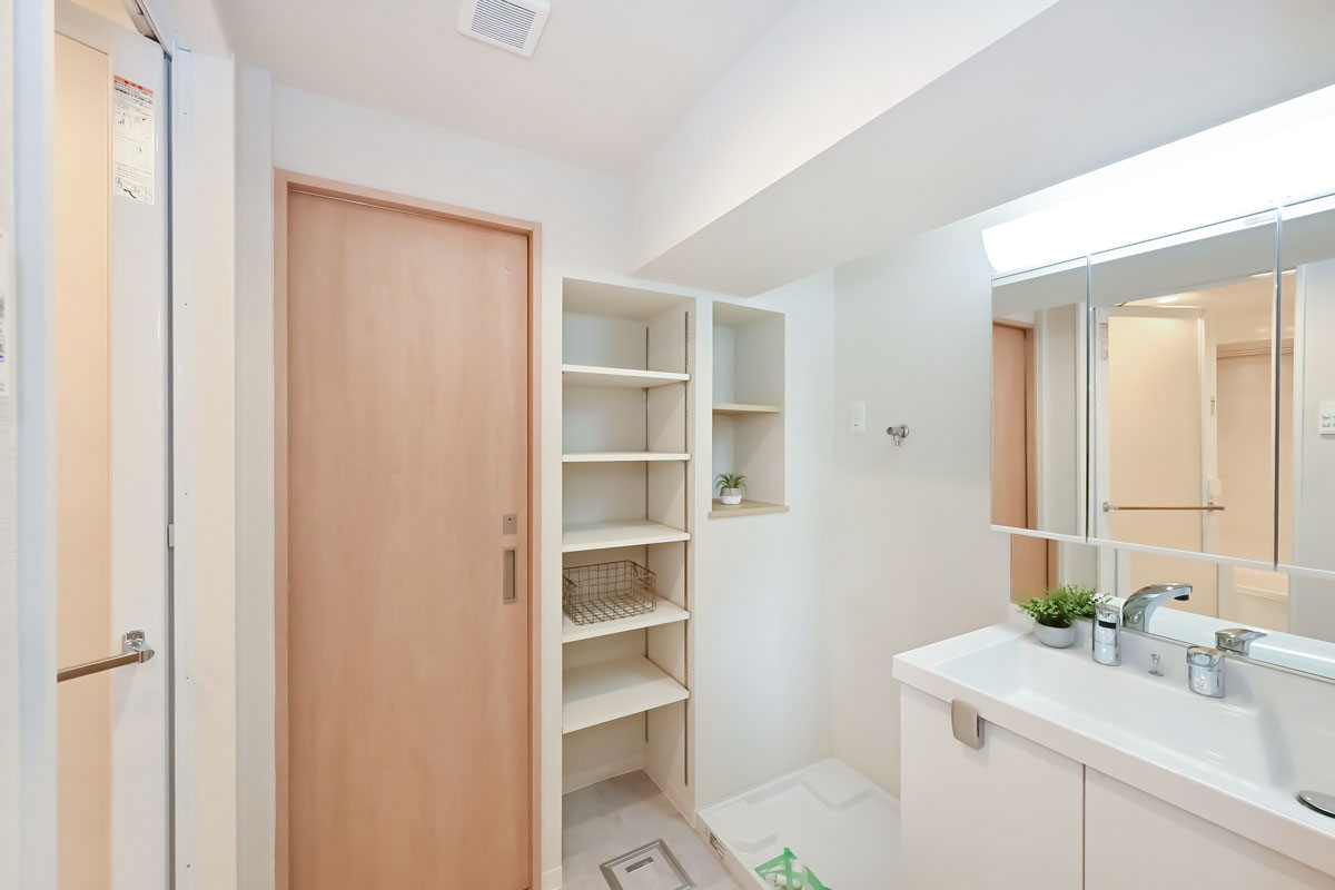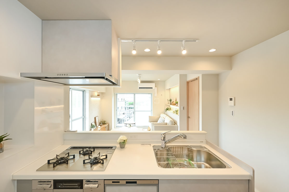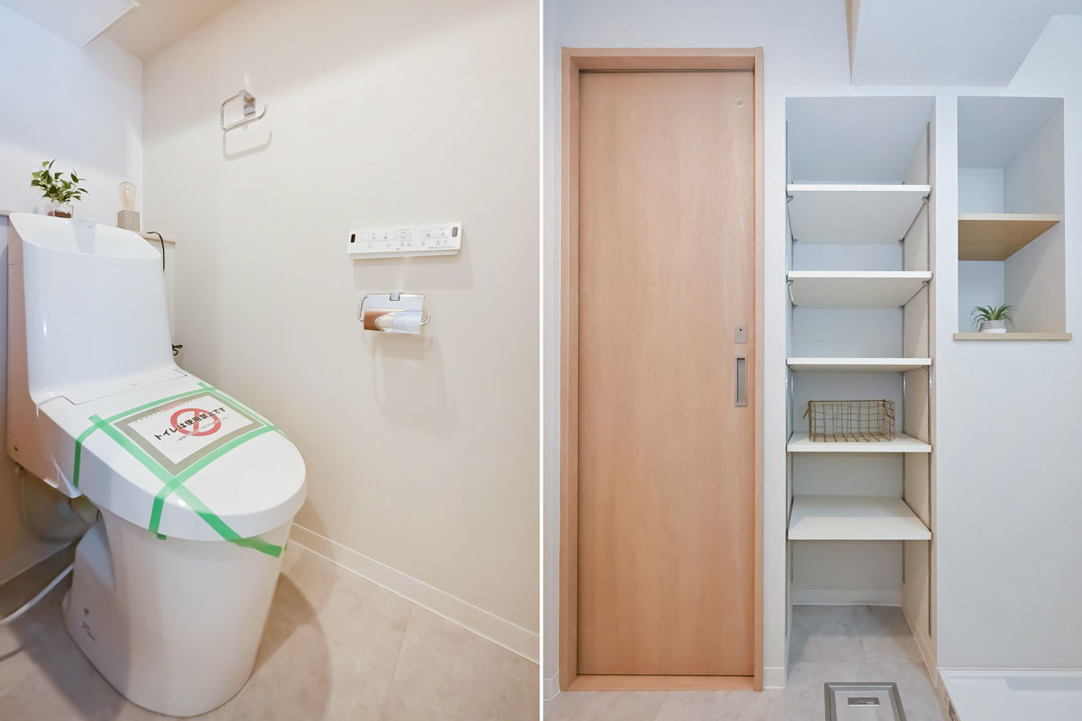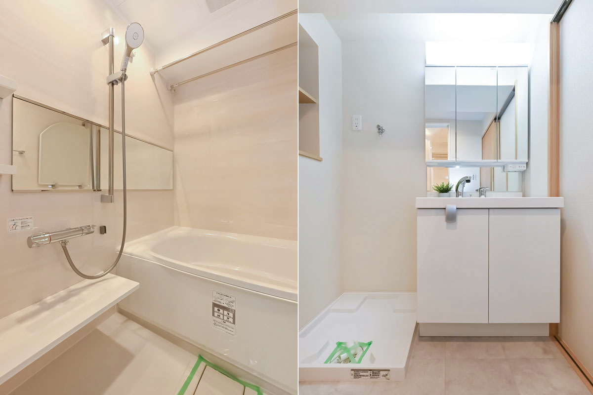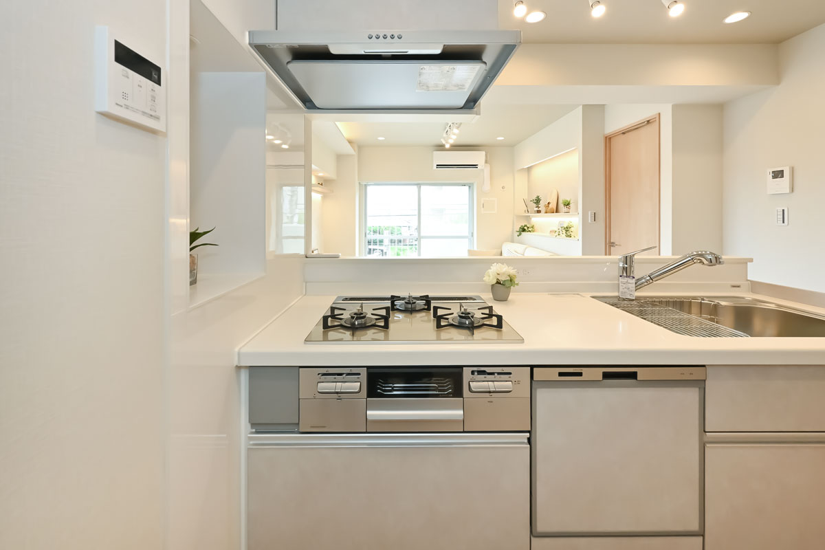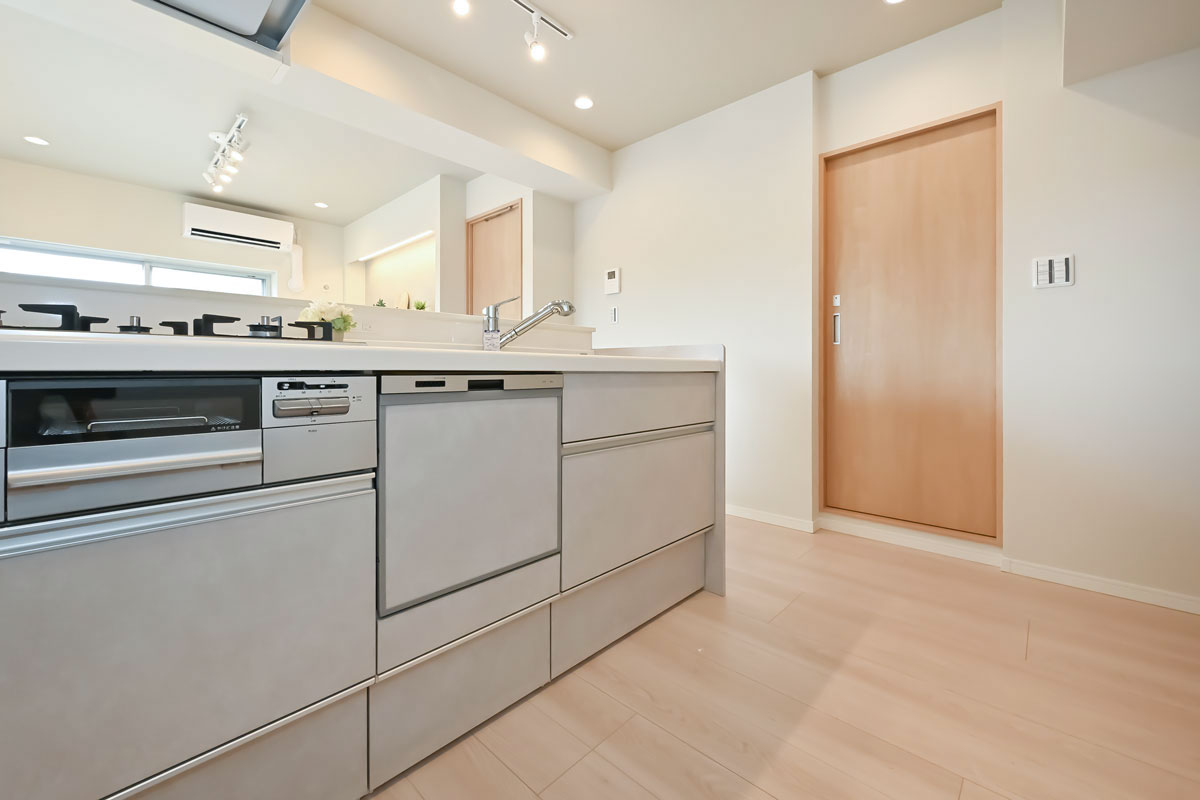 設備面では、食洗機付きのシステムキッチン、追い焚き・乾燥機能付きのユニットバスなど、便利な機能をしっかり備えています。