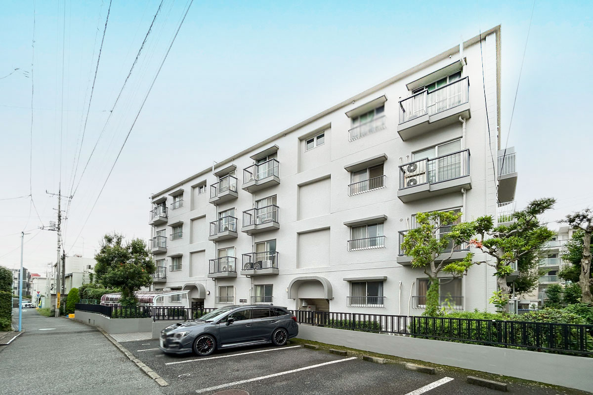 マンションの築年は1977年、2022年に大規模修繕工事が実施されています。外観、共用部とも清潔に保たれ、植栽までお手入れが行き届いていて、築年を感じないきれいな建物です。
