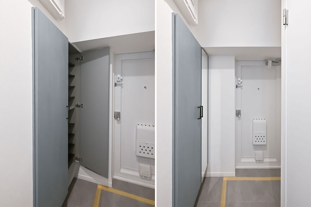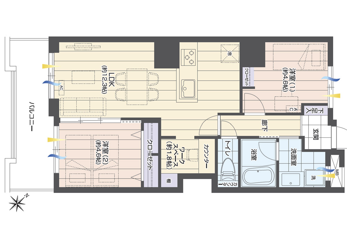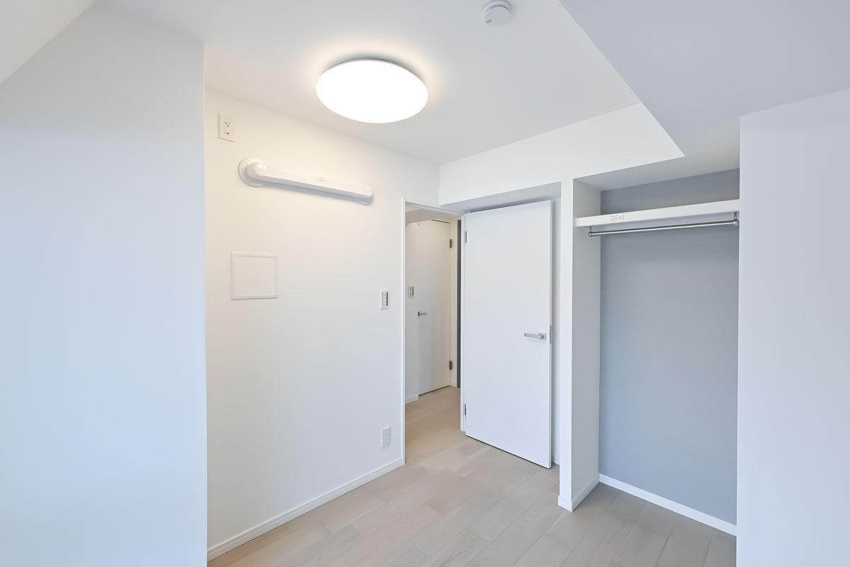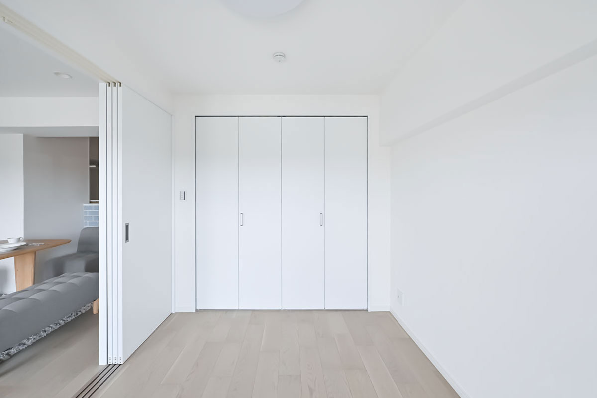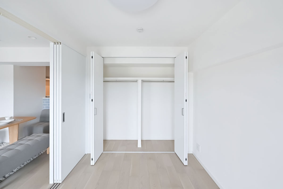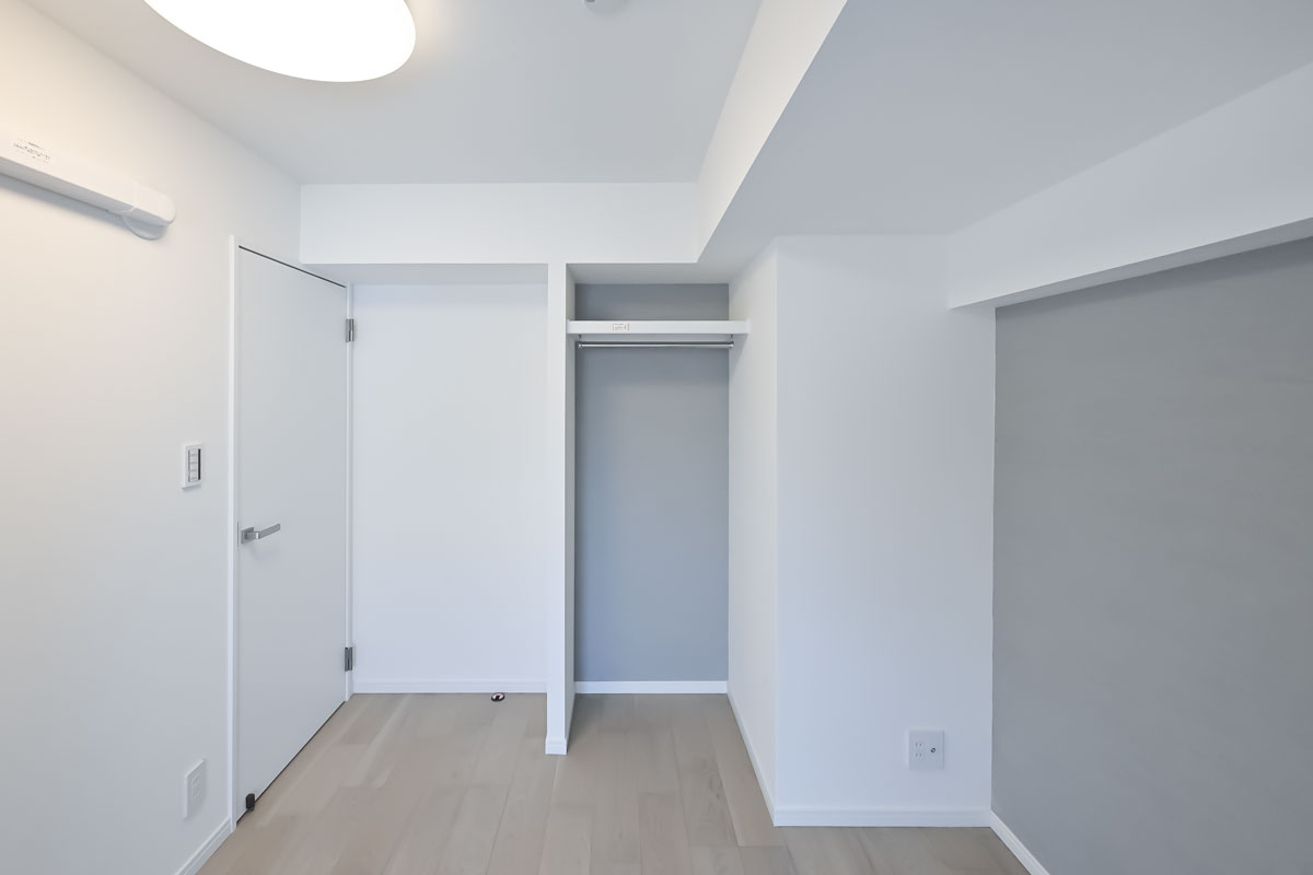 2LDKの室内は、外観とリンクしたブルーやグレーをアクセントカラーに使い、スタイリッシュで落ち着いた雰囲気。独立したワークスペースも嬉しいポイントです。