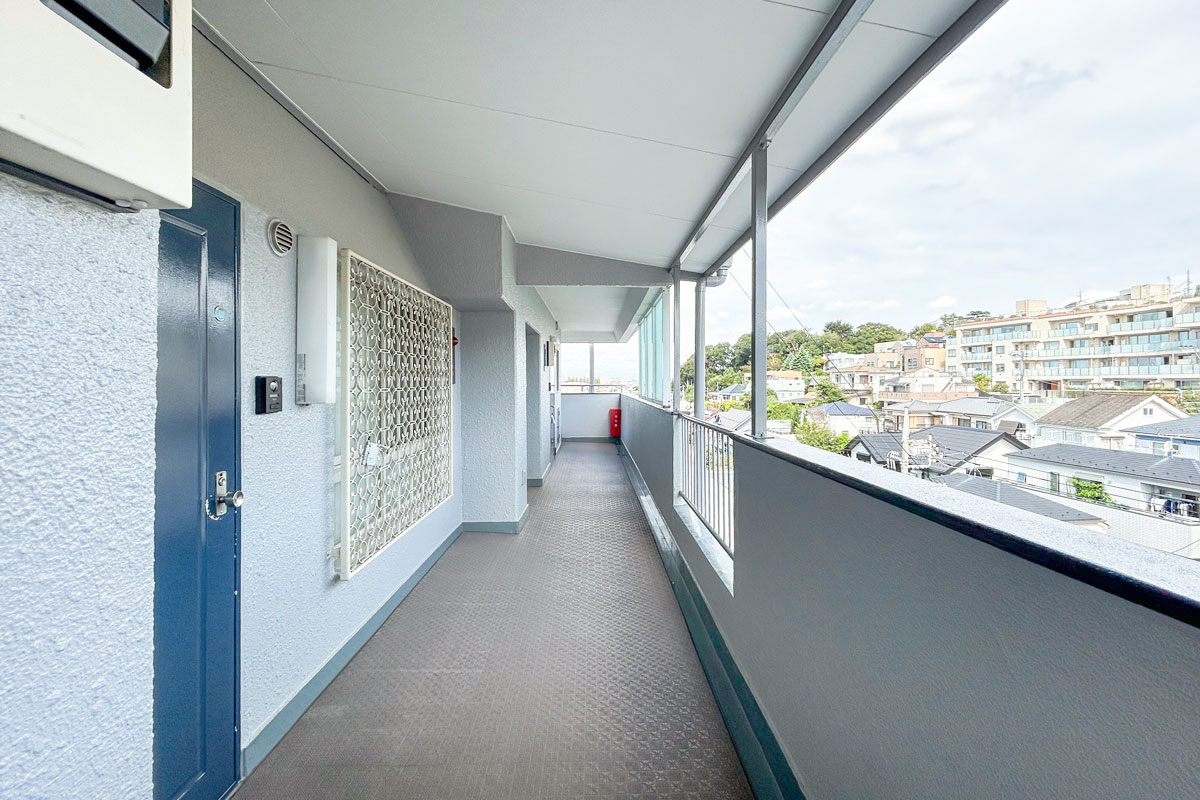 外壁塗装に加えて、防水・シーリング工事や、階段手摺の新設などしっかりとメンテナンスが行われ、敷地内、共用部とも清潔に保たれています。