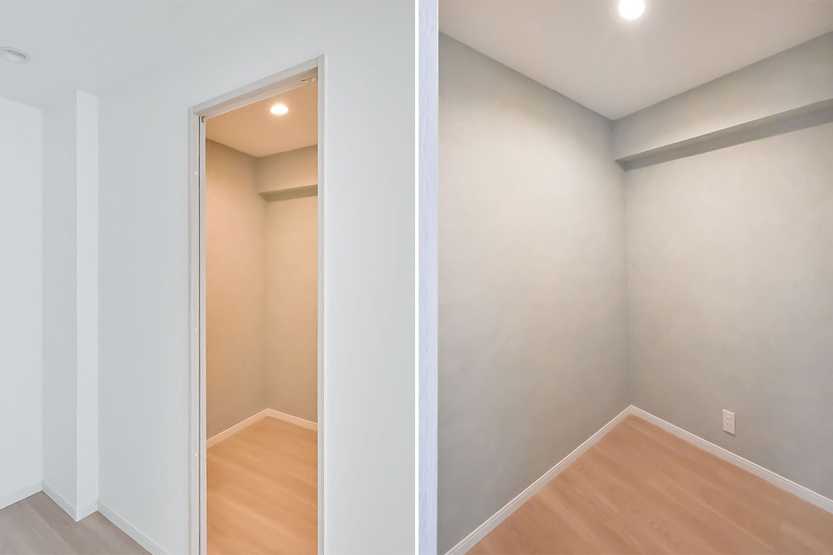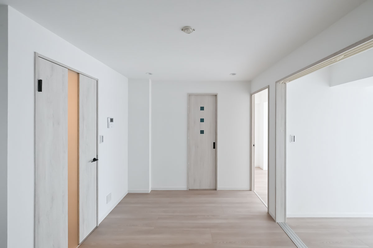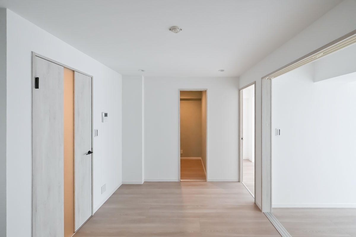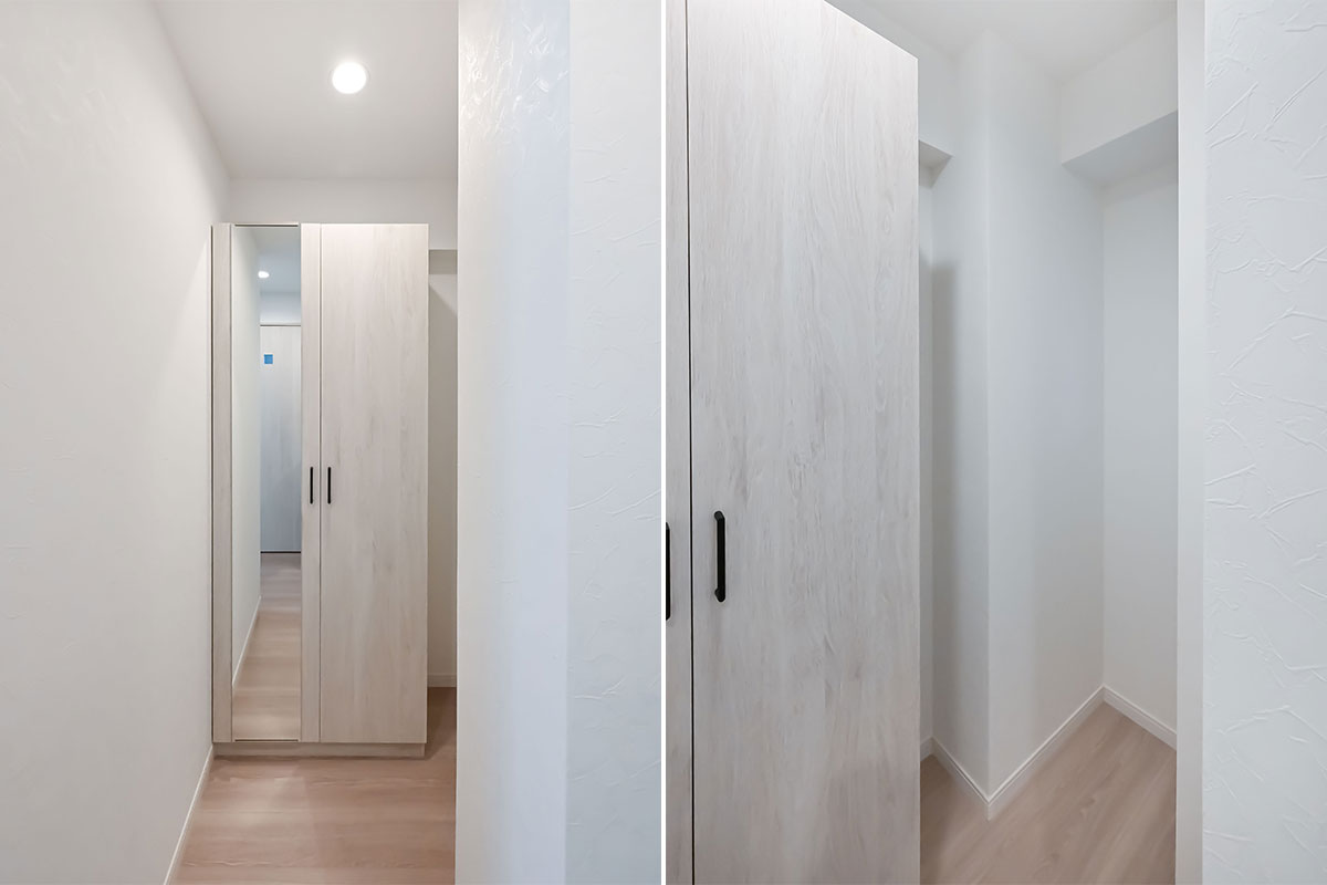 玄関奥の物入と、ちょっとした空きスペースも嬉しいポイント。ストックやシーズンアイテムの収納に使ったり、オープンクローゼットとして活用したりと、便利な空間として重宝しそうです。