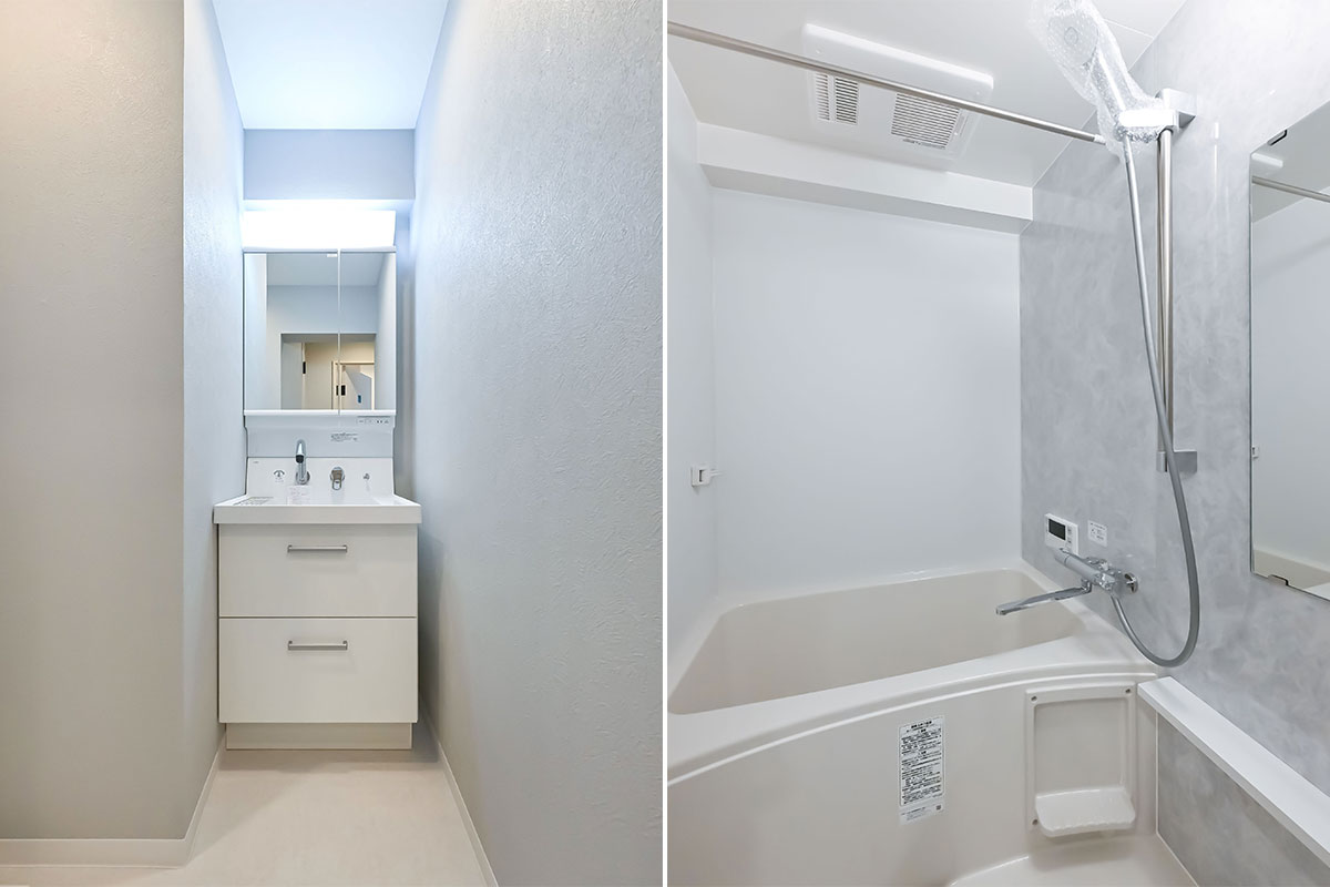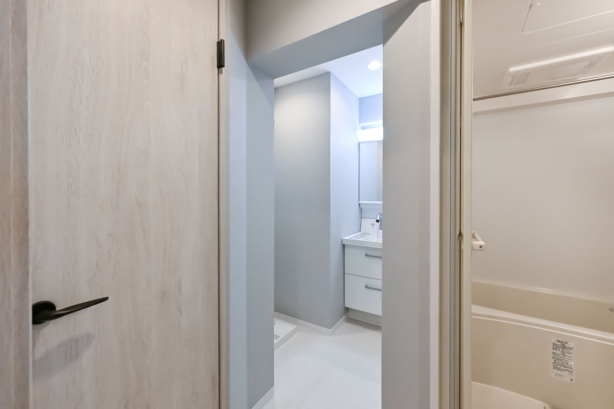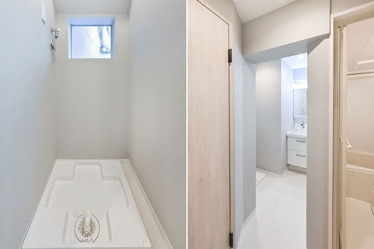 洗面エリアにもじゅうぶんな広さがあり、作業効率も上がりそうです。小窓から自然光が入り、通風も良好です。