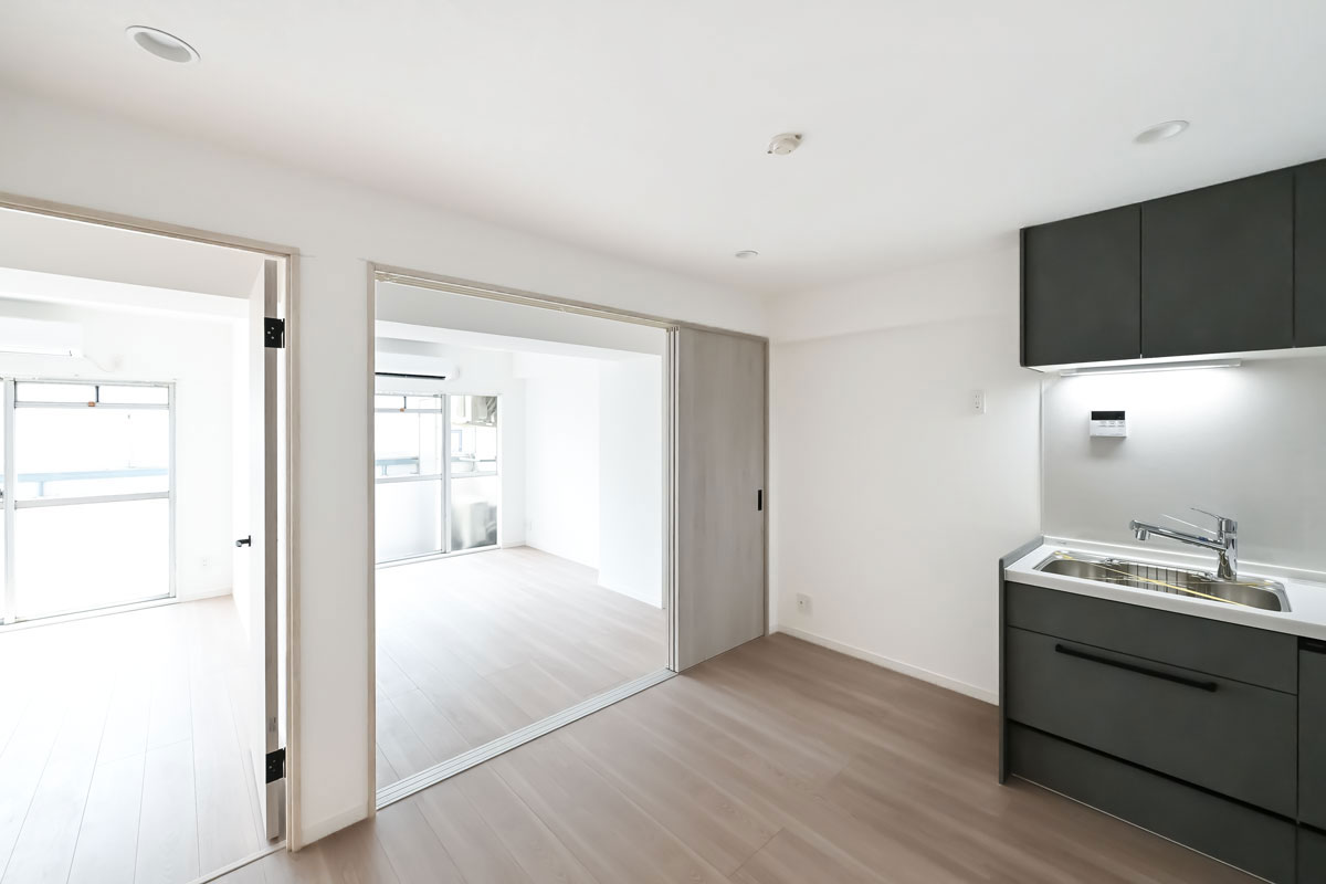 洋室のスライドドアを開ければ、約13帖の広々としたLDKとして利用でき、約1.5帖のDENはワーキングスペースとしても活用可能。さまざまな生活スタイルに柔軟に対応できそうです。