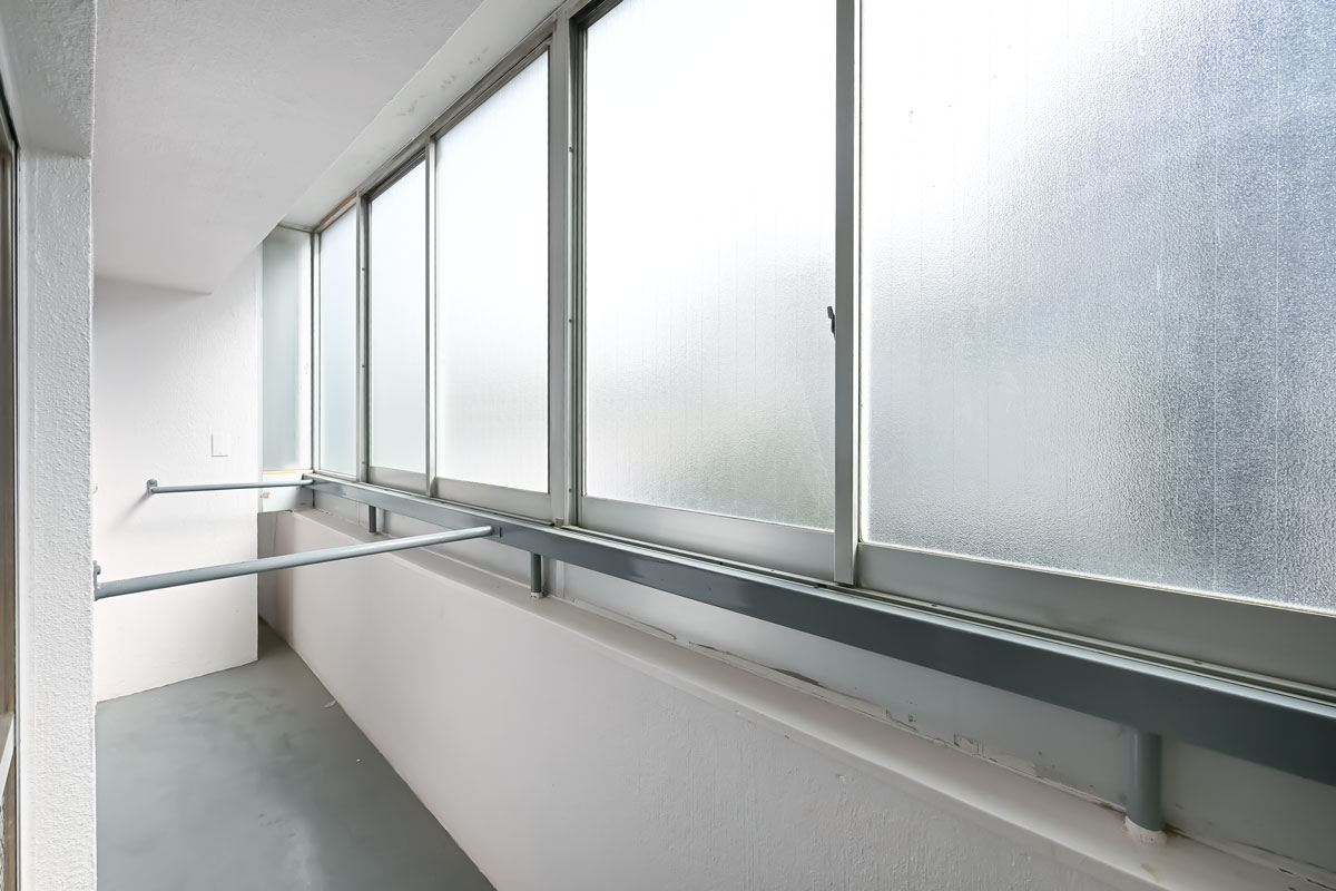 お部屋は2階で赤堤通りに面していますが、バルコニーを覆ってサンルームにすることで、環境音を軽減し、公道からの目隠し対策になっています。