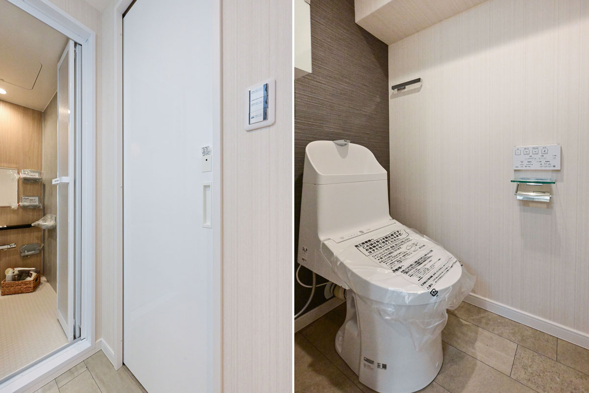 食洗機を備えたシステムキッチンや、追焚き・暖房換気乾燥機能付きのユニットバス、温水洗浄機能付きのトイレなど、快適な生活のための設備も充実しています。エアコンも1基設置済み。スムーズに新生活を開始することができそうです。