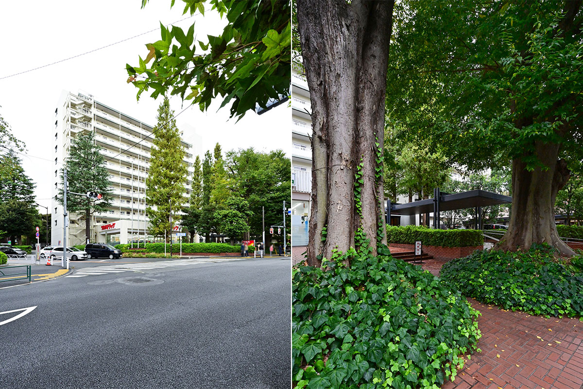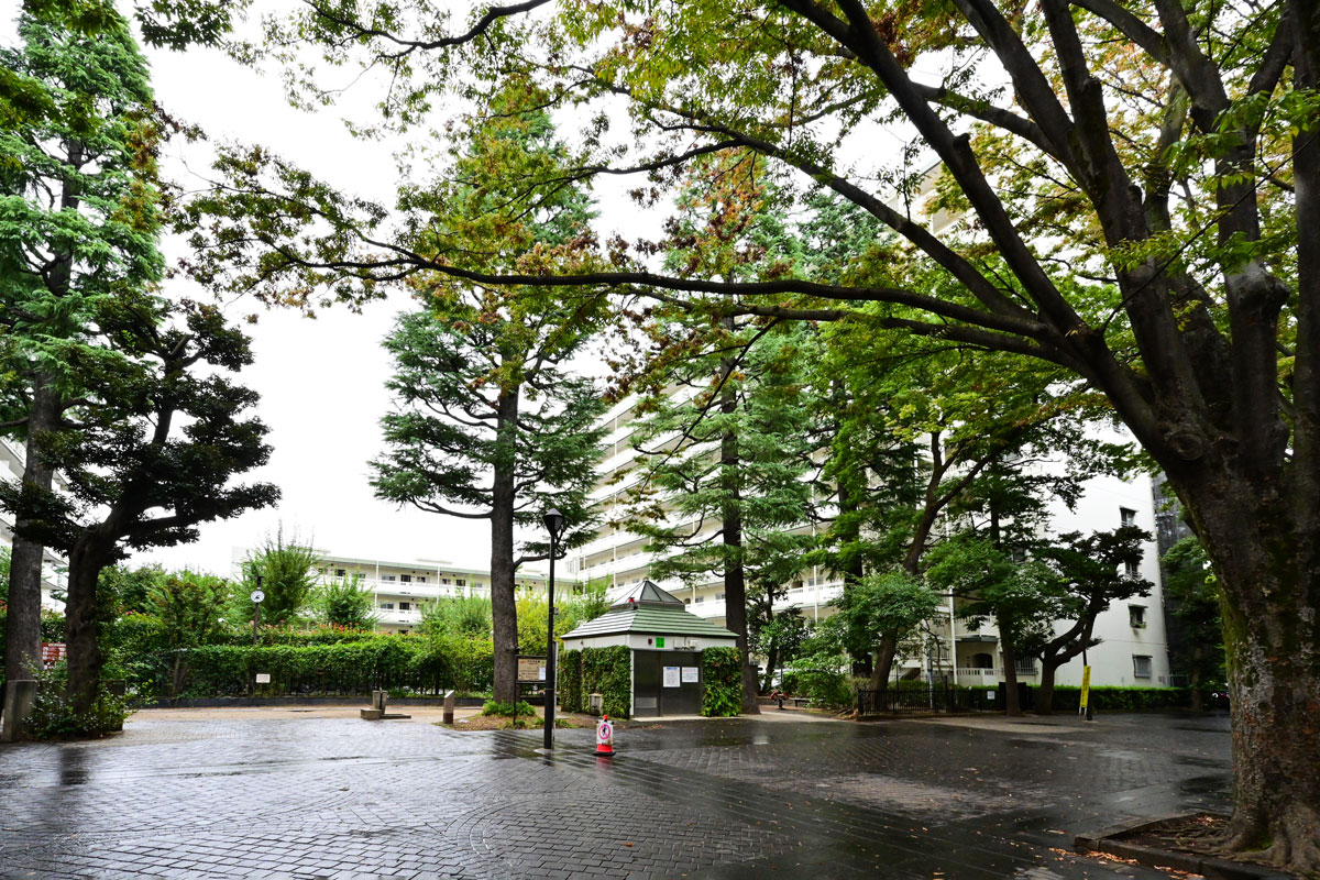 取材時は雨上がりで、けやき広場はしっとりとした緑と澄んだ空気に満ちていました。緑溢れる住環境を満喫することができます。