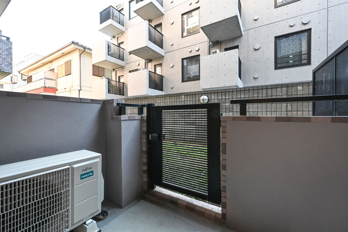 ご紹介するお部屋は、1階の2LDK。お手入れしやすい、ちょうどよい広さの専用庭付きです。