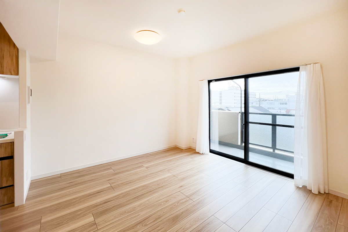 お部屋は4階の3LDK角部屋。日当たりの良い、明るいリビングです。