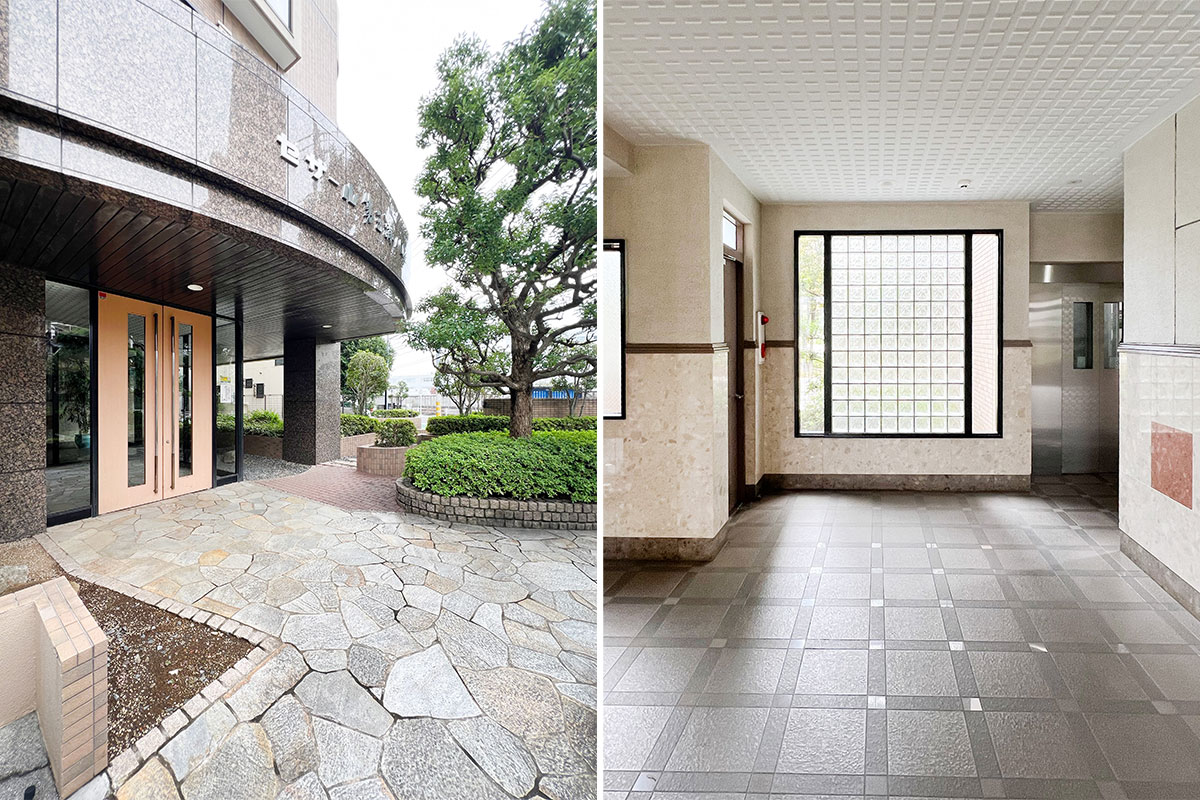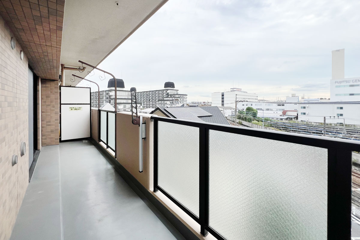 物件は、駅から武蔵小杉方面に向かって南武線沿いを歩くこと15分。共用部は清潔で管理がしっかりされている印象を持ちました。