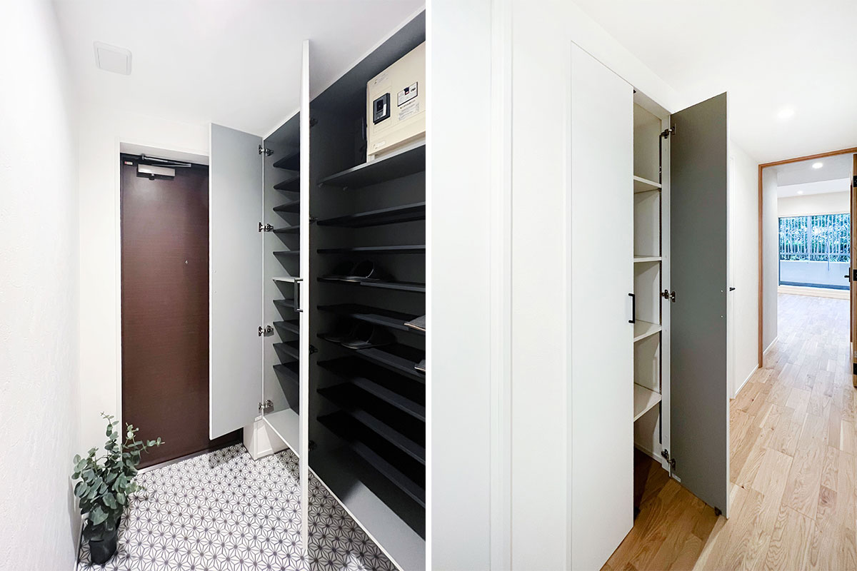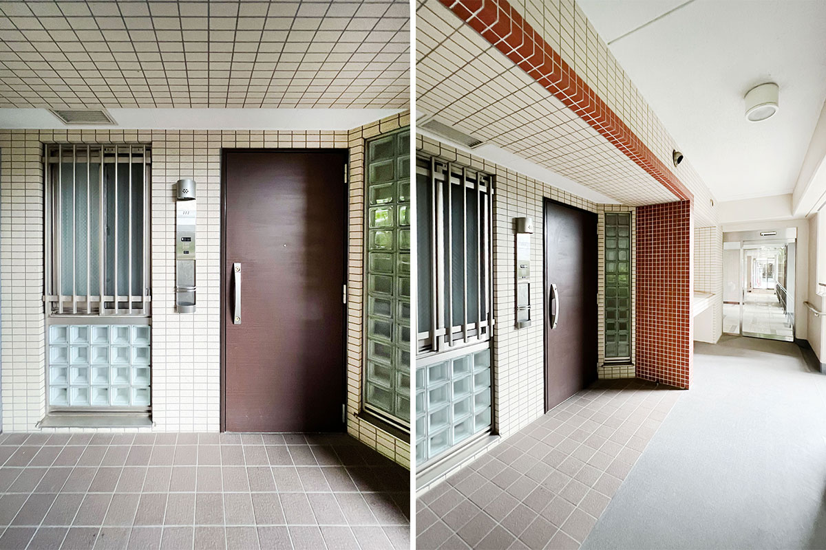お部屋は1階にある111号室、3LDK。エントランスの自動ドアから一番近くのお部屋です。そのため、人の往来はありますが、ドアの真正面から少しずれて渡り廊下となっており、開ける度に家の中が見えてしまうようなことはなさそうです。1階住戸は利点もあり、急いでいてもすぐに出かけられますし、下層住戸への騒音の心配もしなくて大丈夫。小さなお子さんがいるファミリーにはもってこいです。