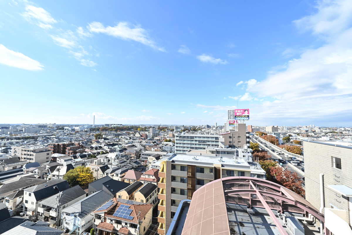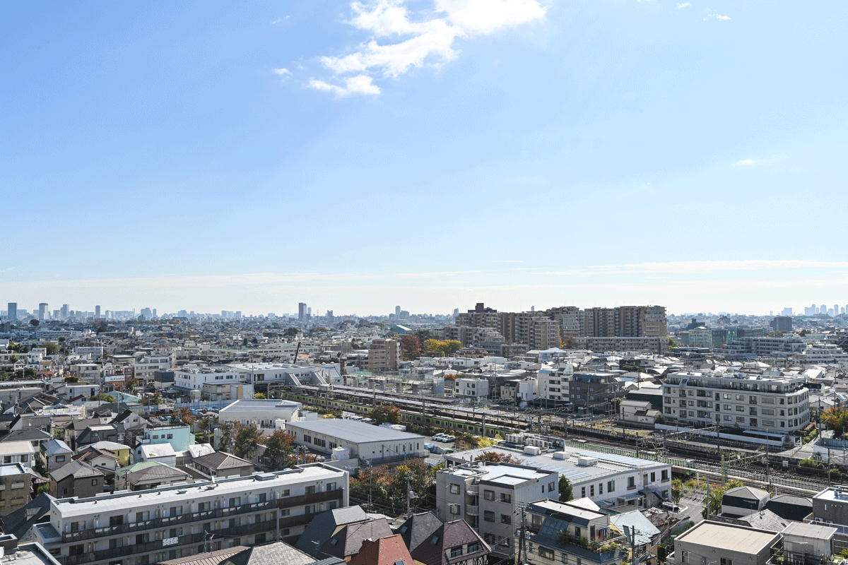 お部屋は12階、南向きで日当たりが良く、世田谷の街並みを一望できる開放的な眺望が魅力です。天候によっては富士山が見えることもあるそうです。