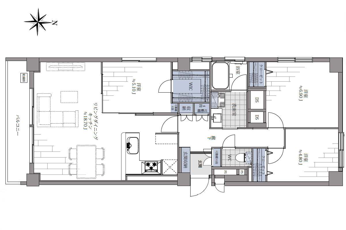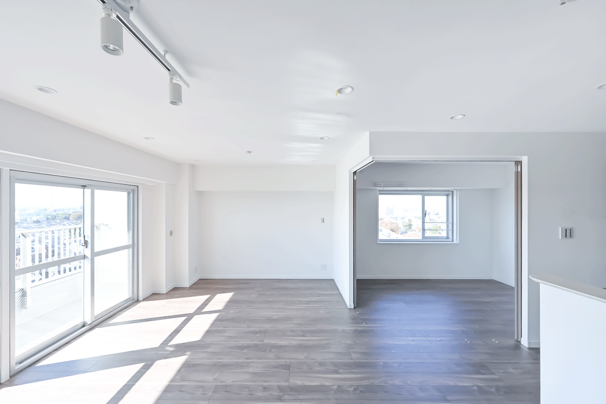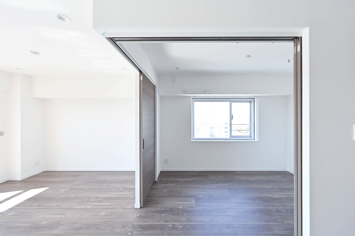 間取りは3LDK。リビング側のスライドドアを開放して、広々とした2LDKとして利用することもできます。