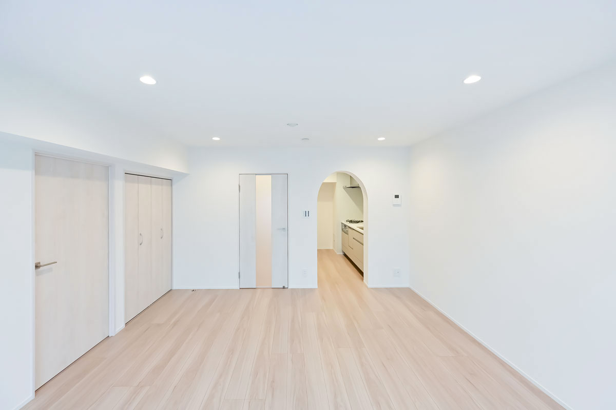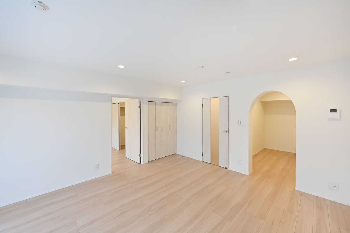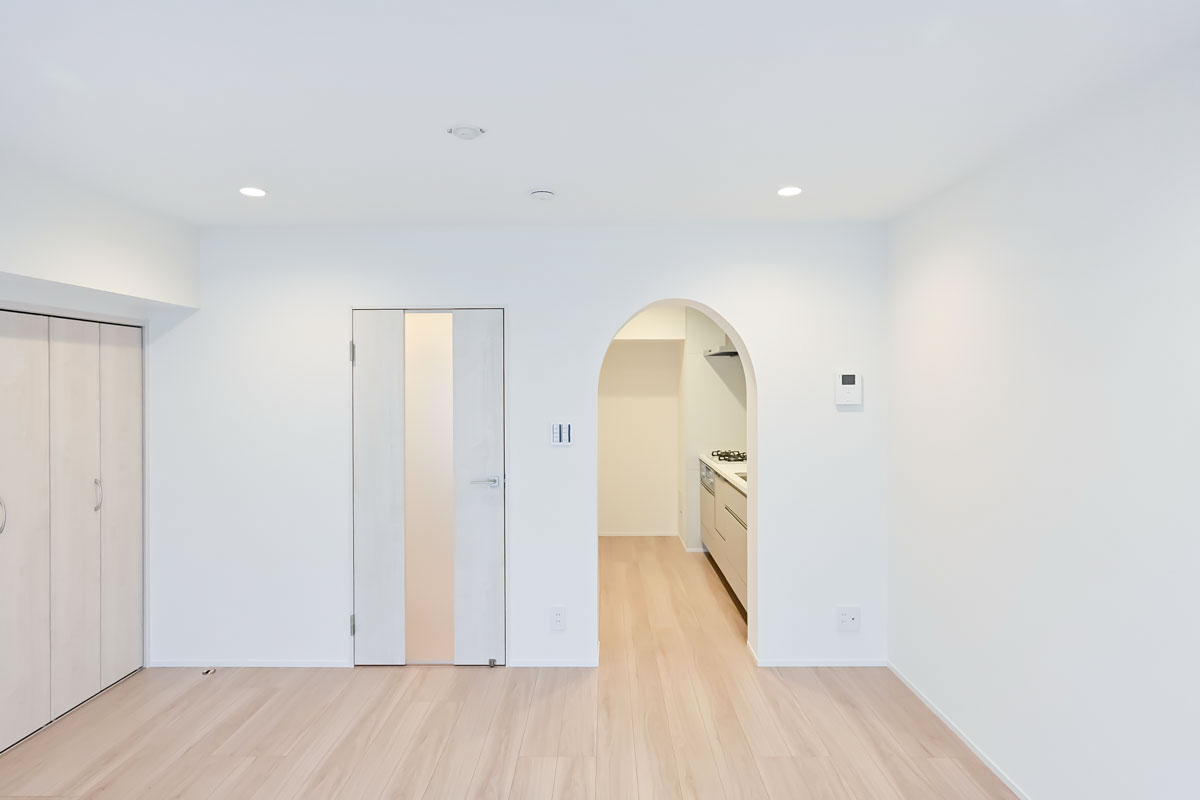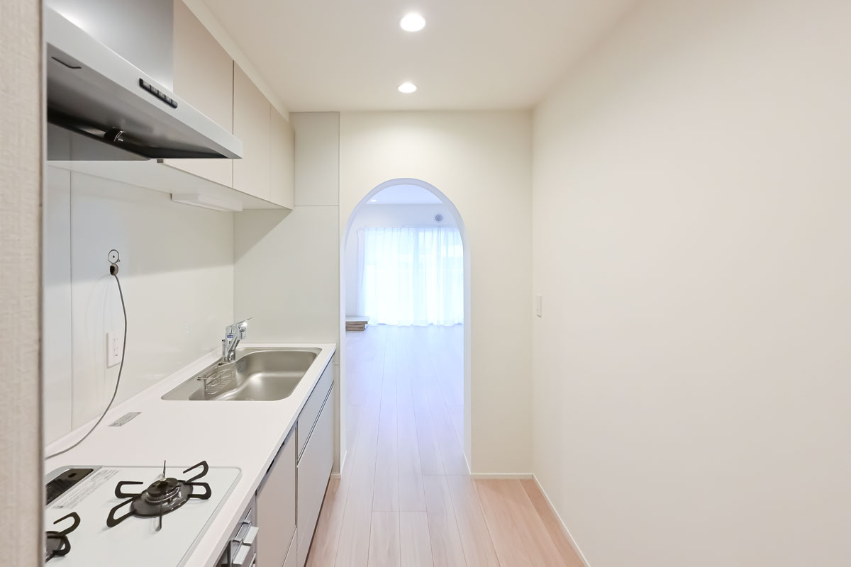 ほんのり温かみを感じる内装カラーリングや、キッチンのアーチ型の入り口など、レトロな雰囲気が漂います。