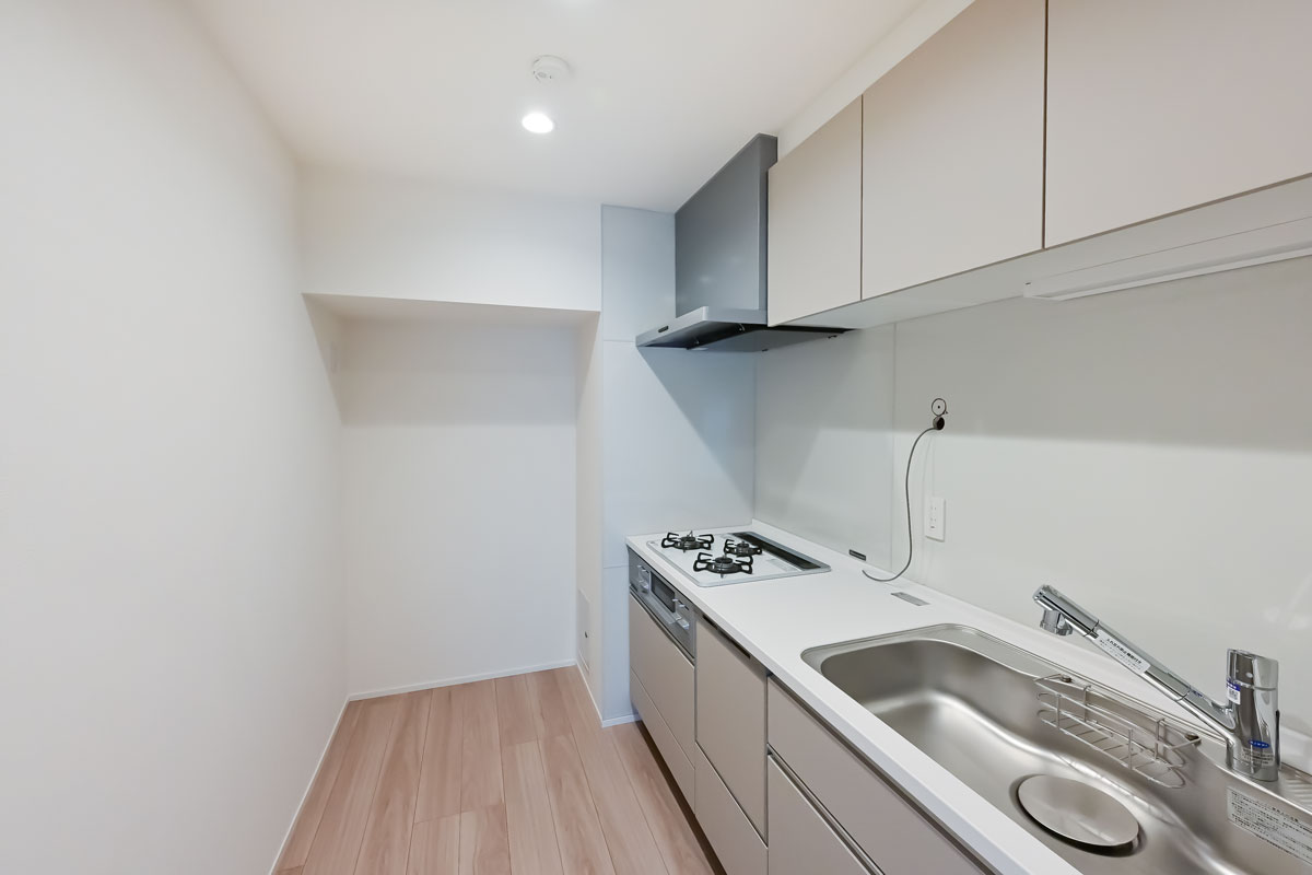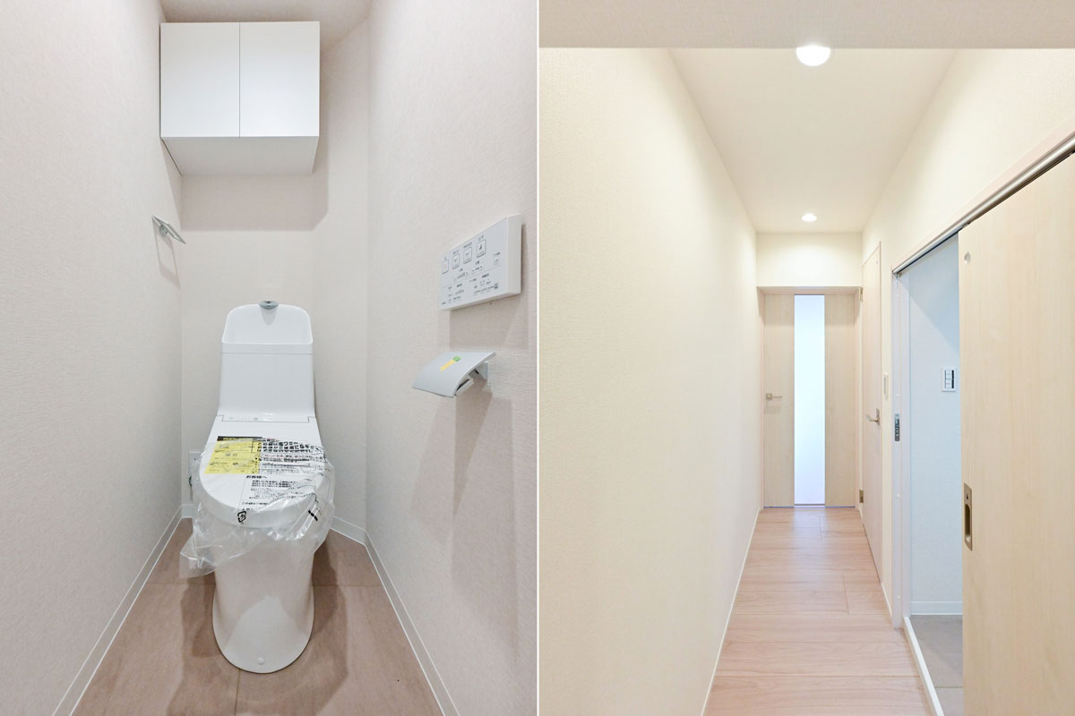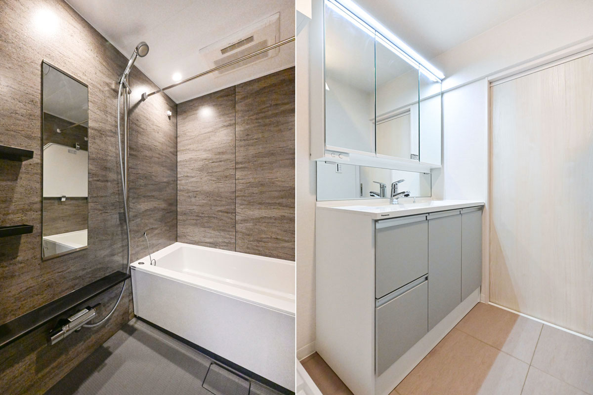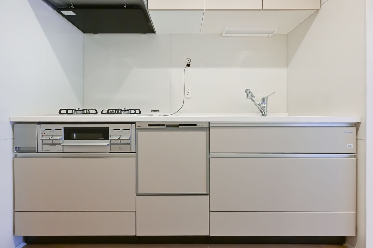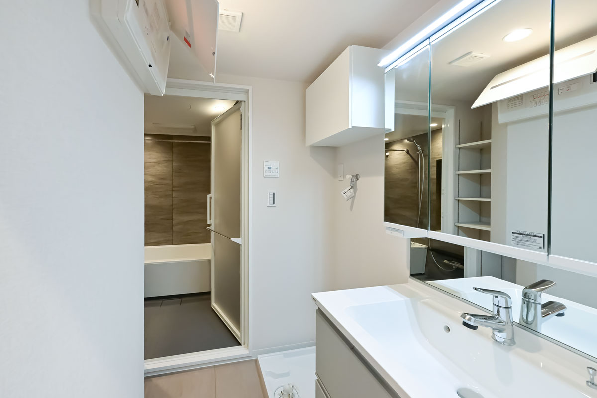 フローリングやフロアタイル、クロス、建具、給湯設備、給排水管は新規交換済み。使いやすい広さのシステムキッチンに浄水器・食洗機、ユニットバスには換気・乾燥暖房機と、便利な機能も備えています。
