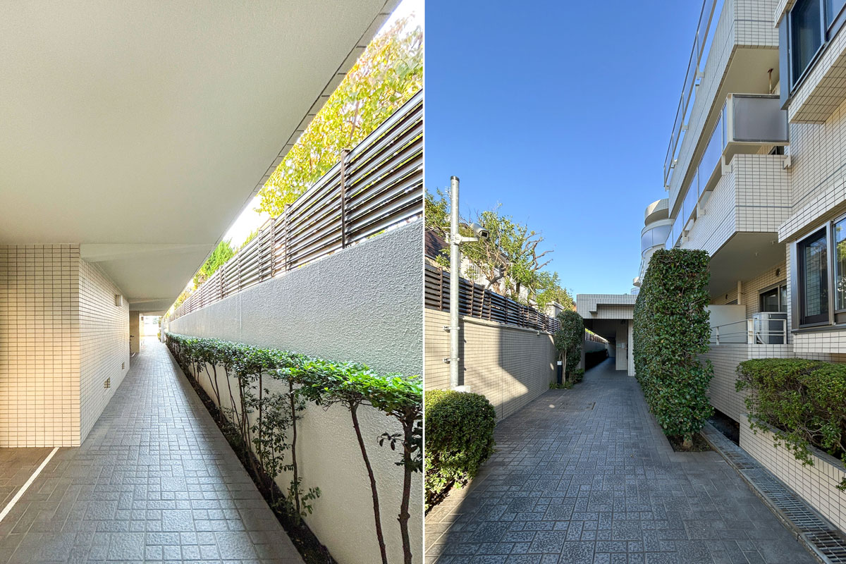 1984年築ながら、年月を感じさせない風格があり、植栽は丁寧に手入れされ、共用部分も清潔に保たれています。