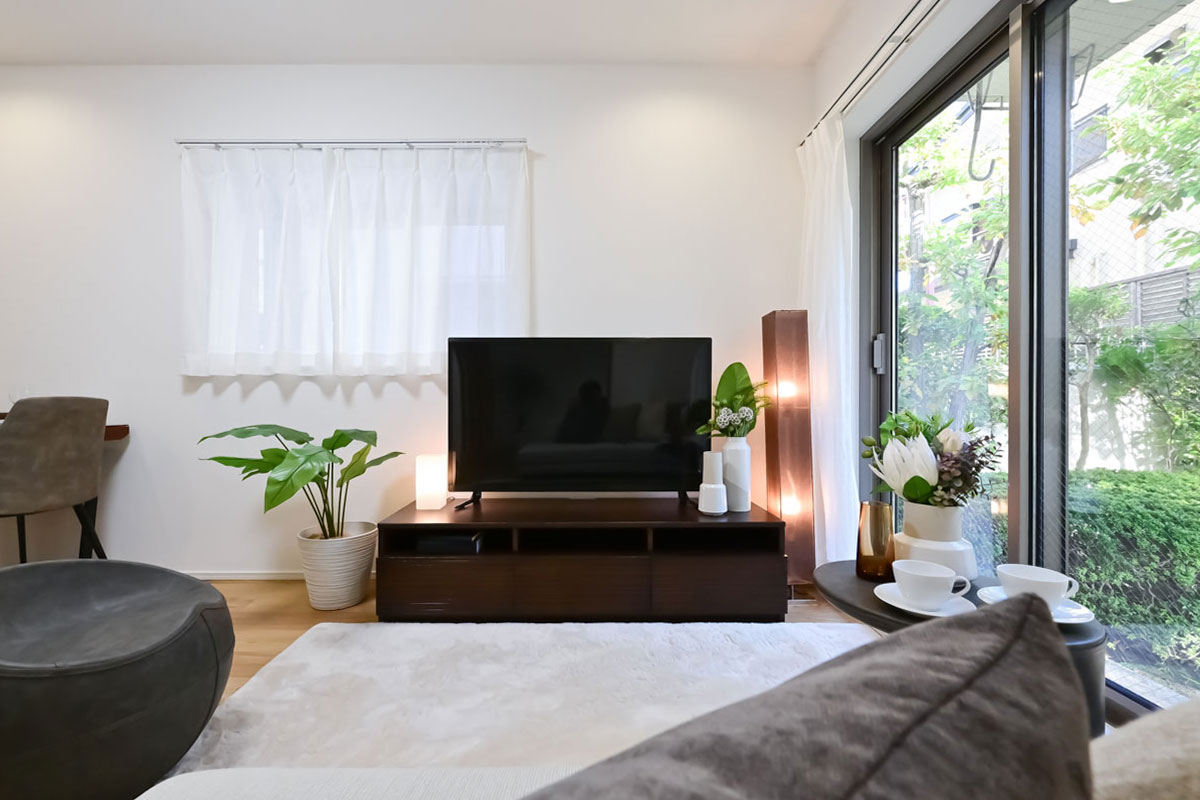 ご紹介するお部屋は1階、南西の角住戸です。専用庭のおかげで日当たり、風通りの良い、気持ちの良いお部屋です。