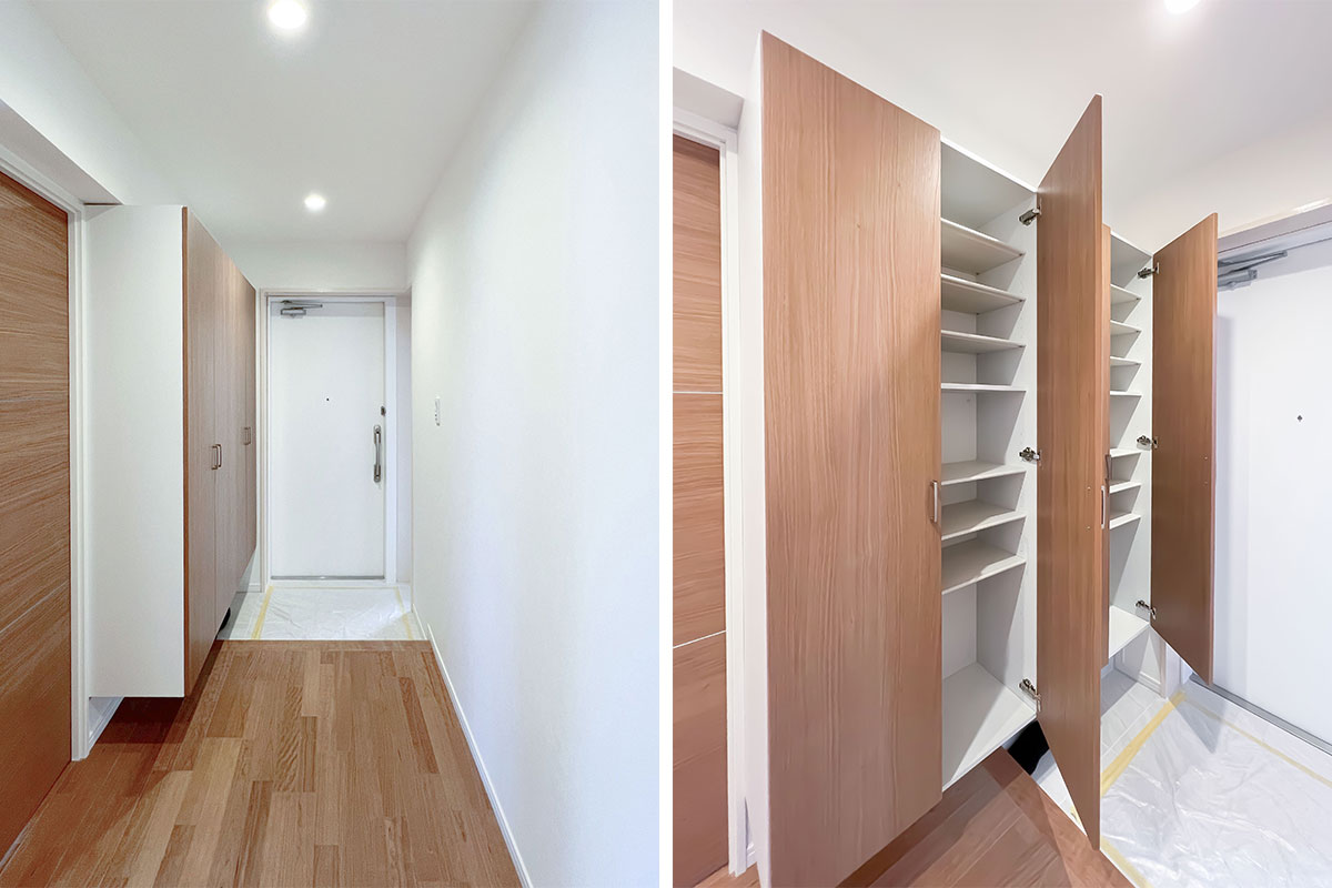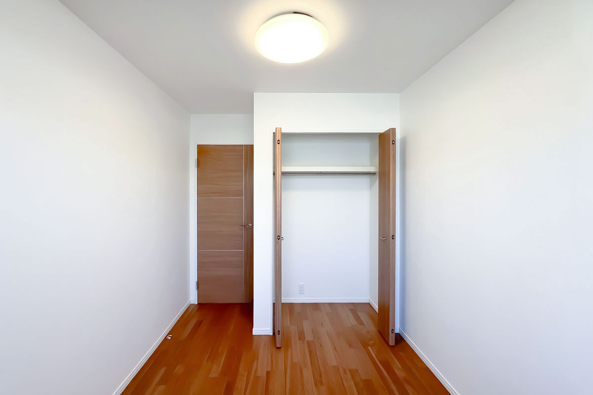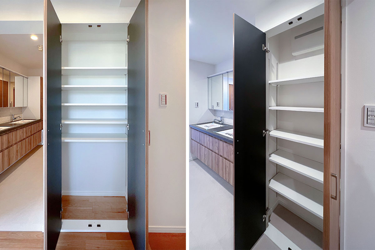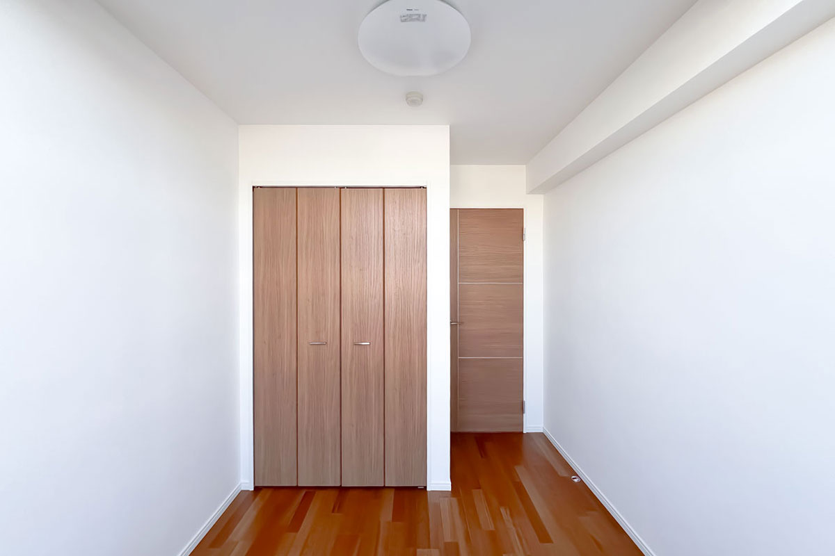 室内はリノベーション済み。最長2年間のアフター保証がついています。キッチン、水回り、給湯器や床暖房も交換済み。新生活が気持ちよく過ごせそうです。収納が多く、廊下には2つ、ランドリースペースにも棚があります。各洋室にはクローゼット、約6.0帖の洋室はコの字型のウォークインになっていて、収納が充実していました。