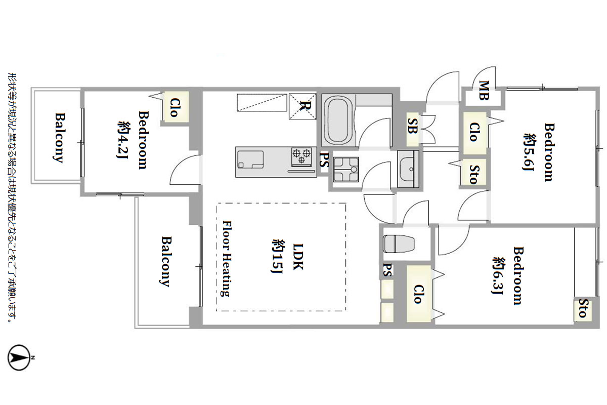 お部屋は3階、間取りは3LDK。バルコニーは南向きで、近隣の建物ともほどよく距離が取れていますので、プライバシーを保ちながらも、自然光を取り入れることができます。