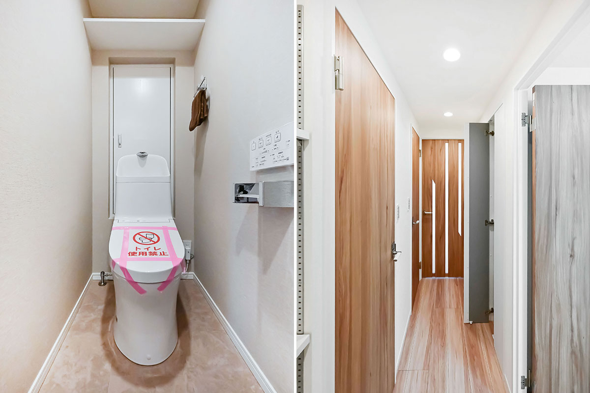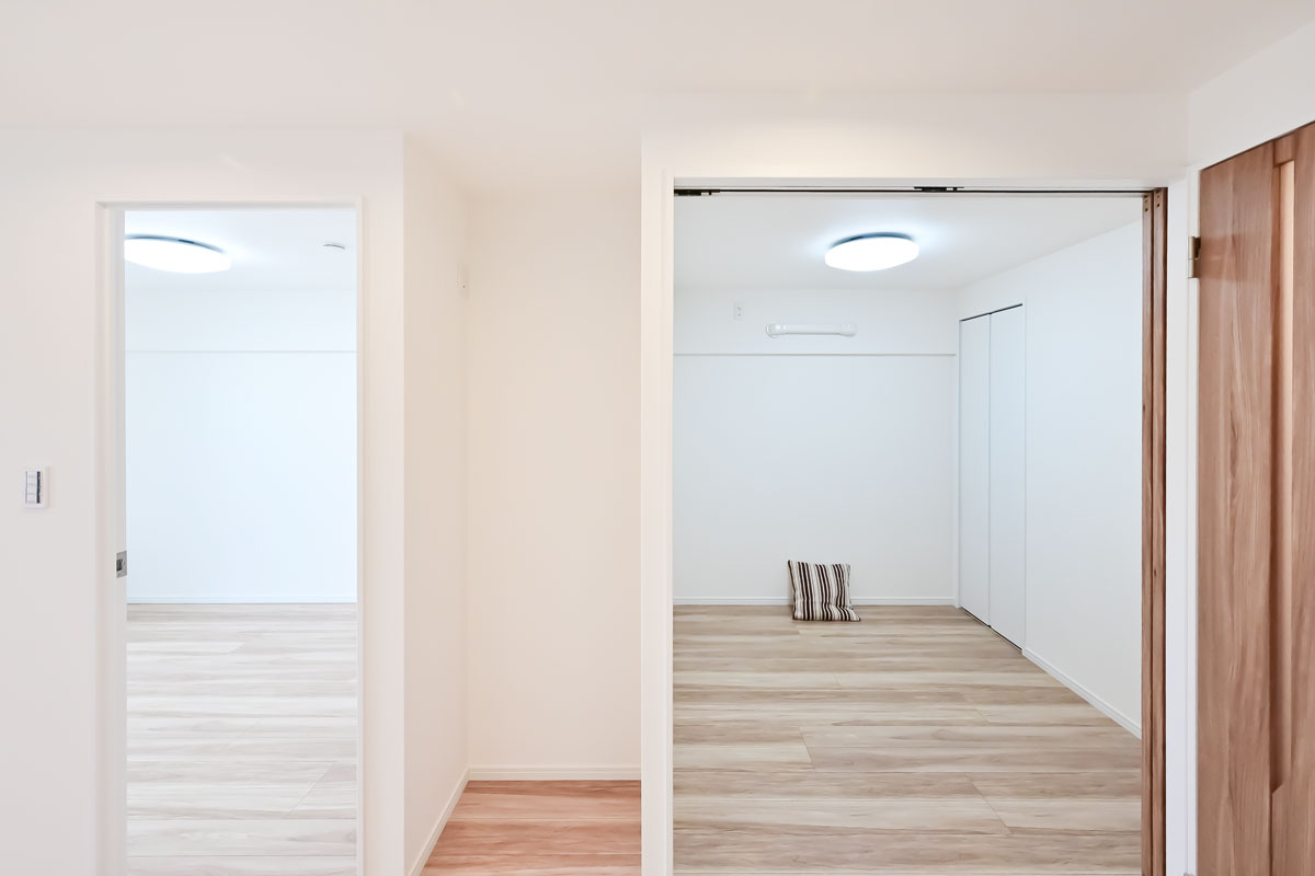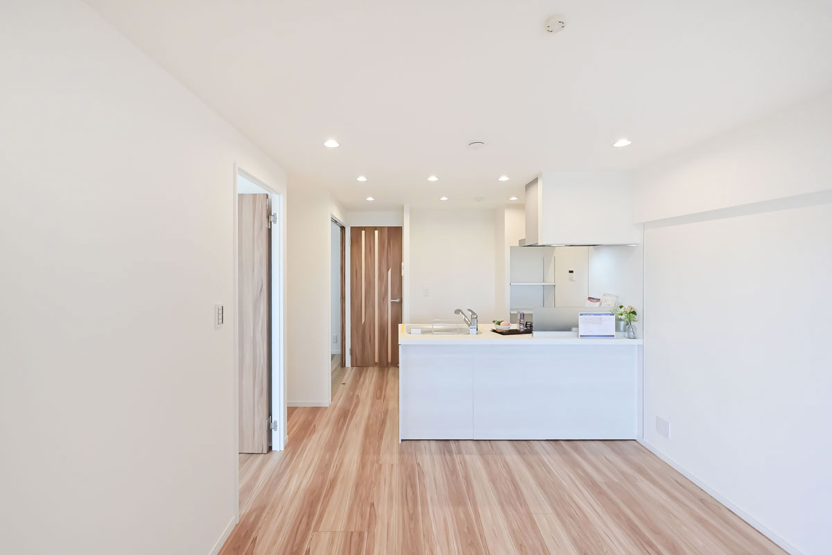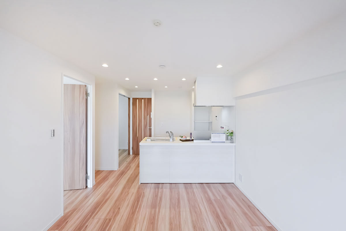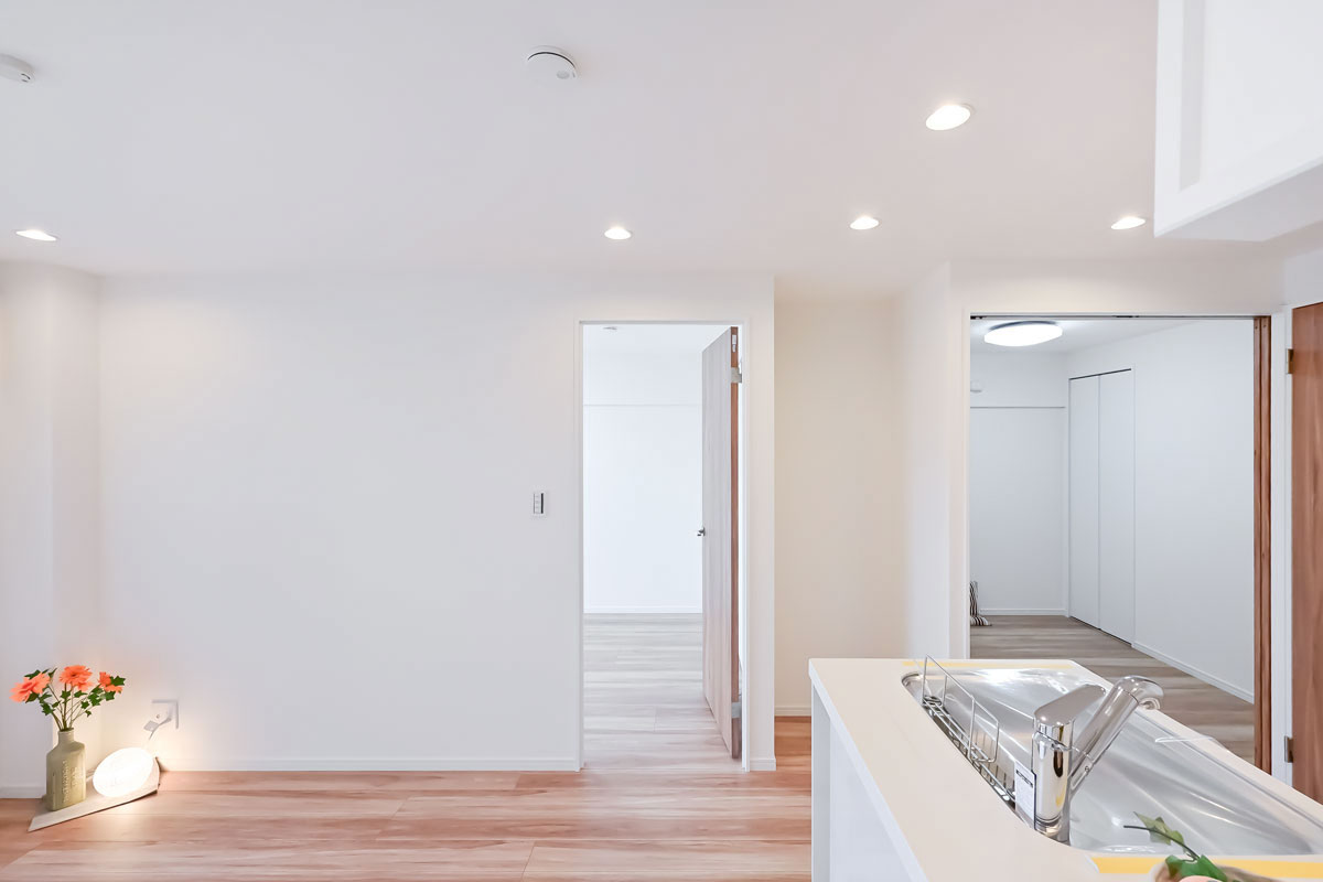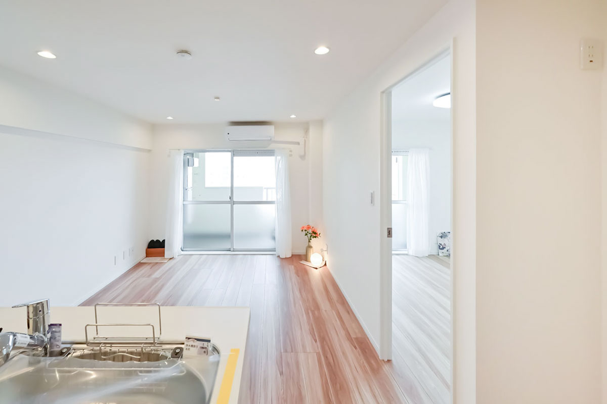 リノベーションが完了したばかりの室内は、システムキッチン、ユニットバス、洗面化粧台など水回りを新規交換、クロス・フローリング、建具も一新され、新築同様に快適です。