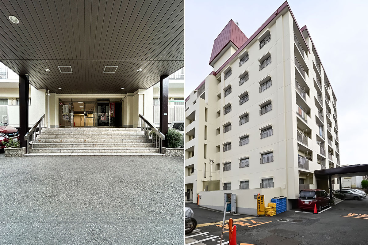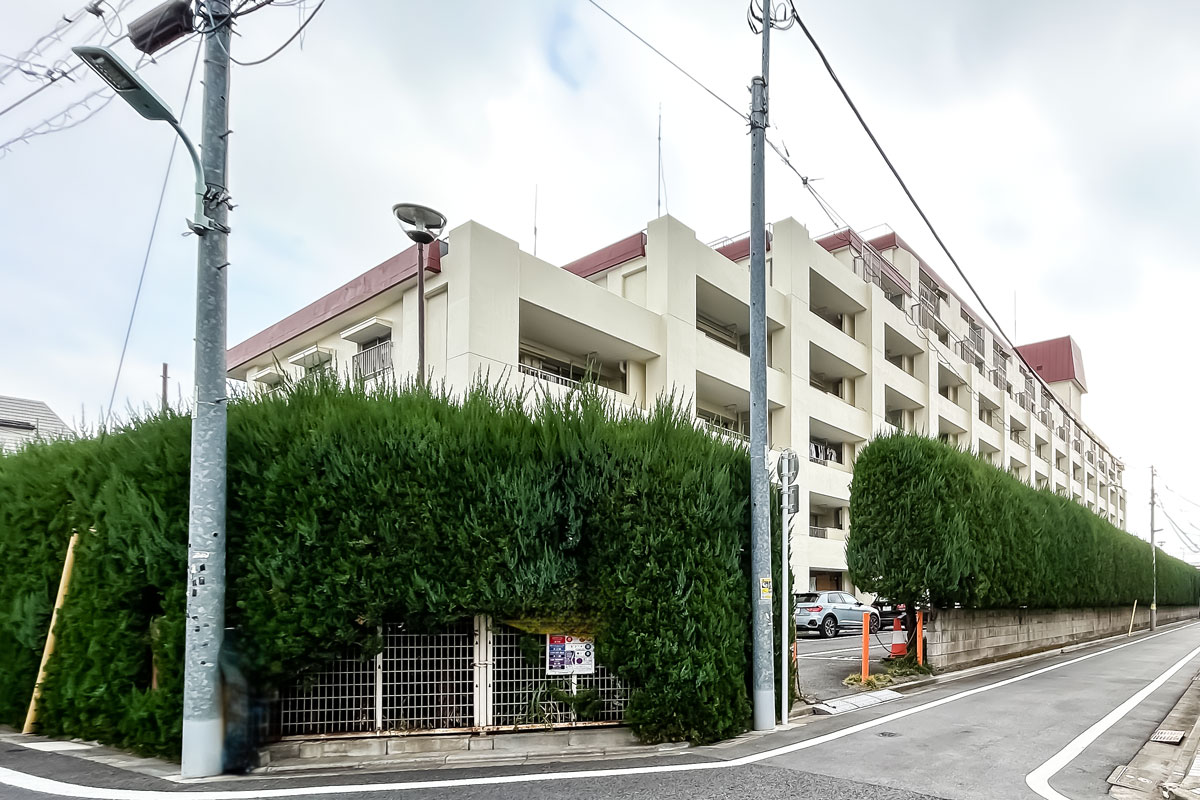 昭和48年築・総戸数172戸の大規模マンション、にぎやかな商店街からすこし離れた、閑静な住宅街の一角に位置しています。