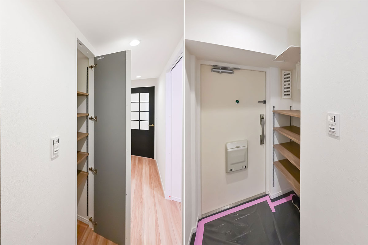 一方で、玄関のミルクボックスやバルコニーの物干しフックなど、レトロなディティールを残しているところが魅力です。ヴィンテージマンション好きには見逃せない物件です。