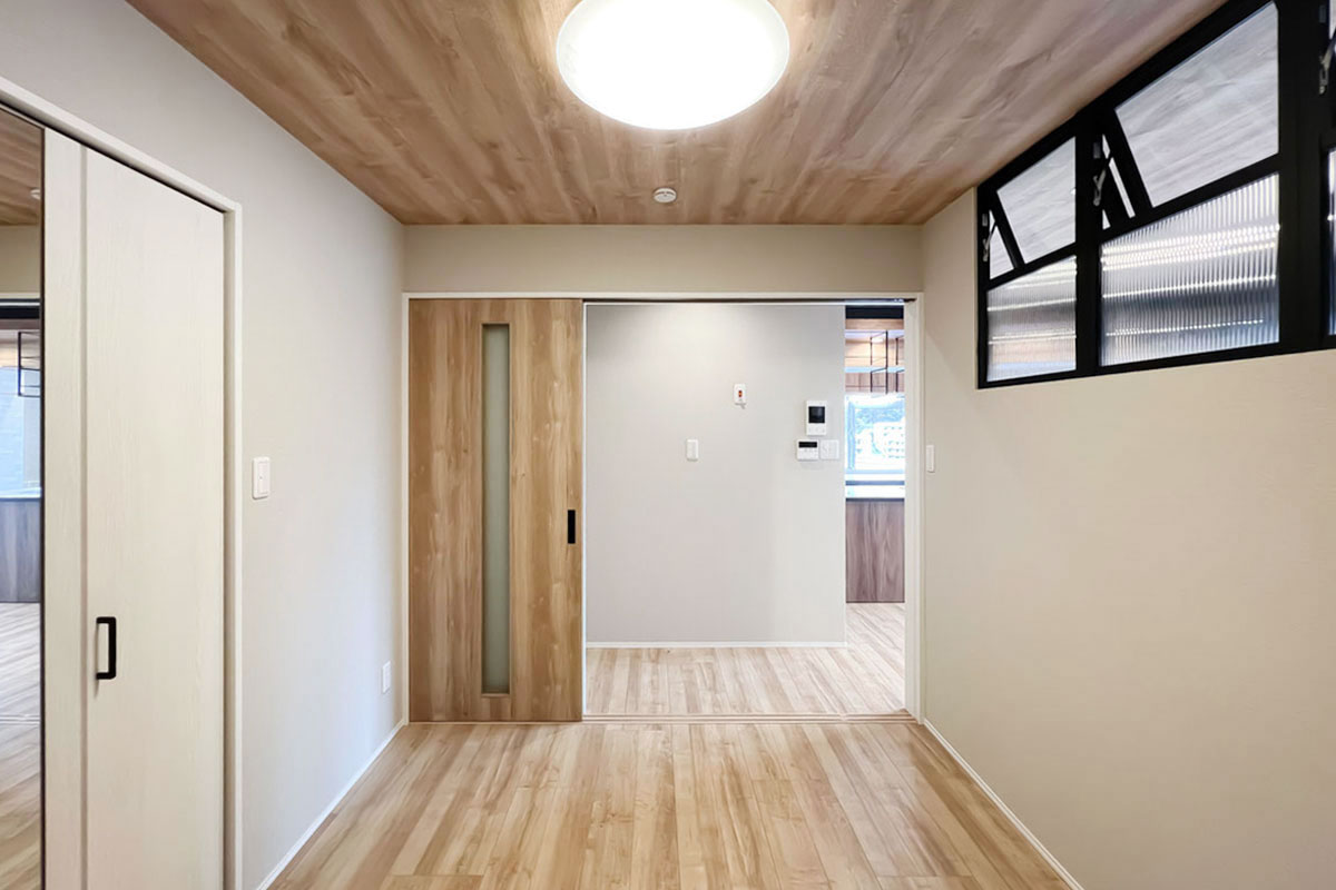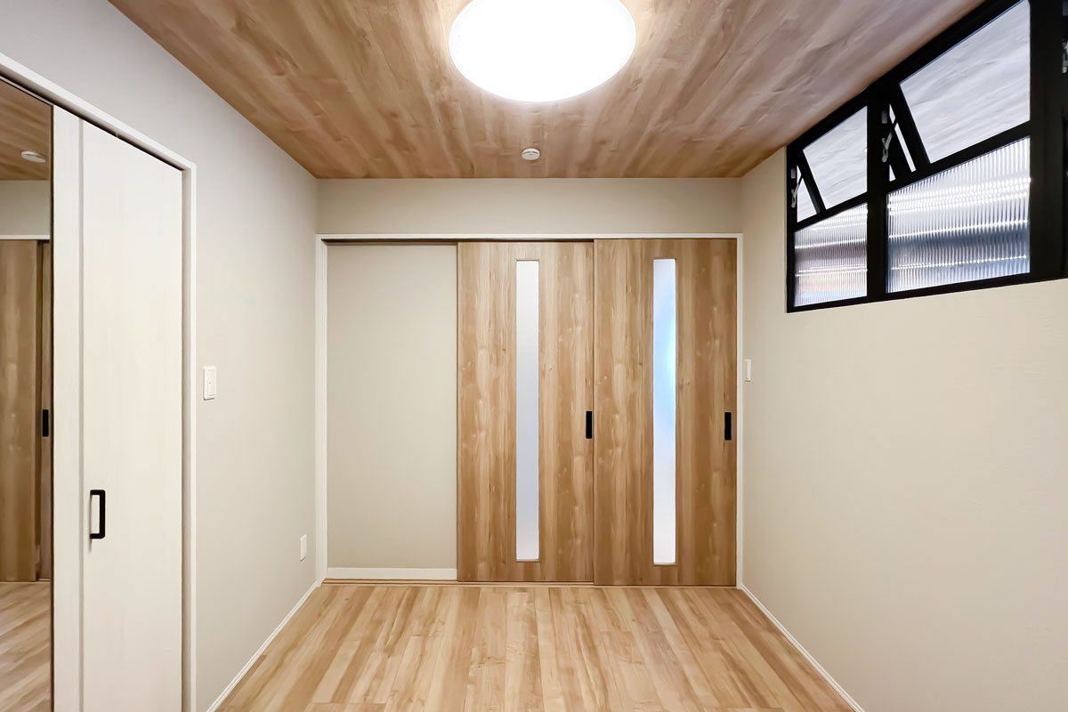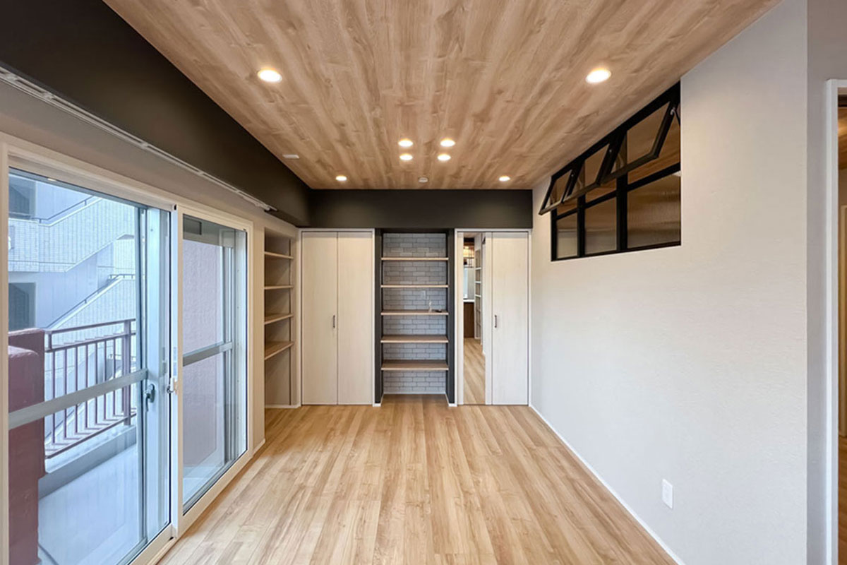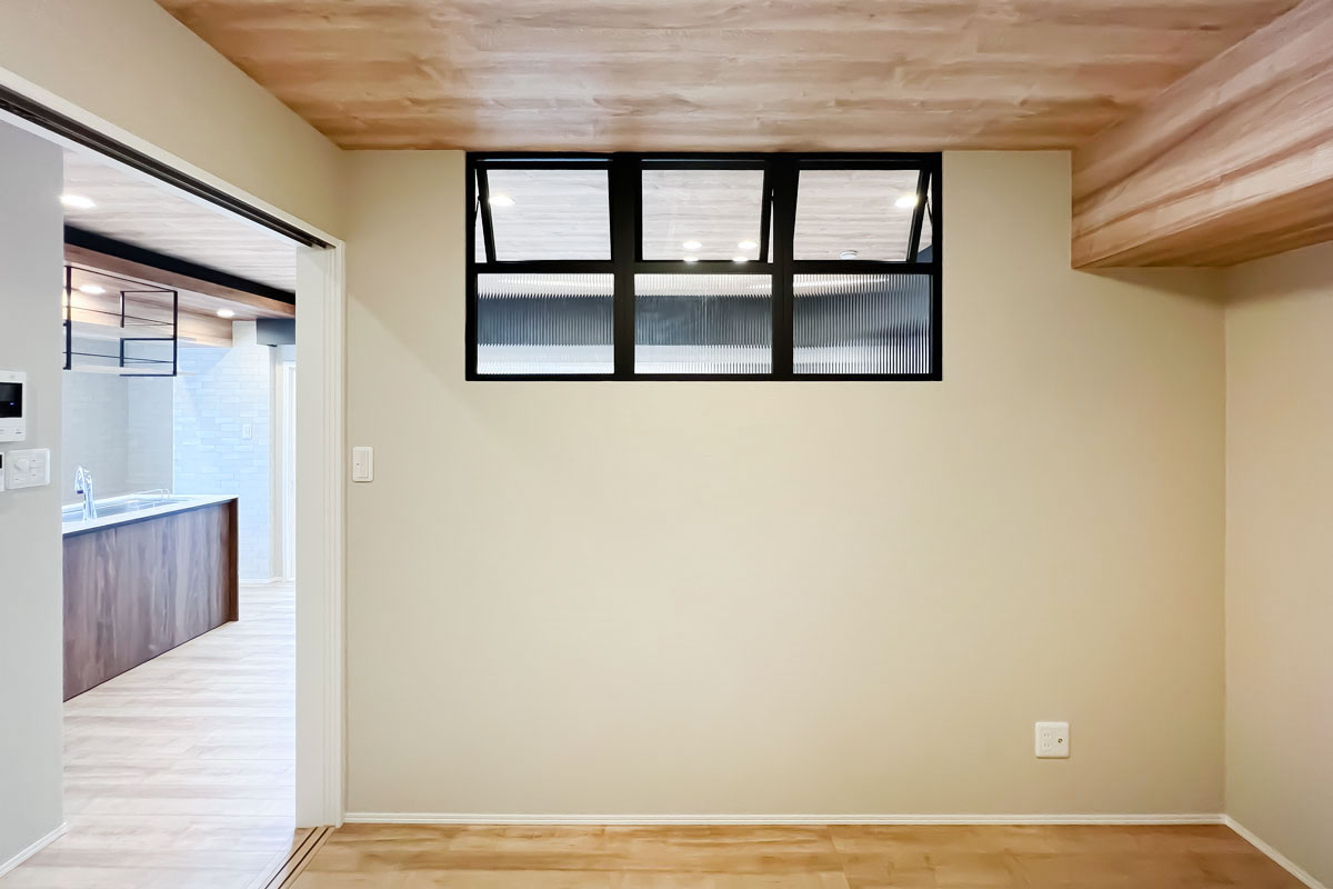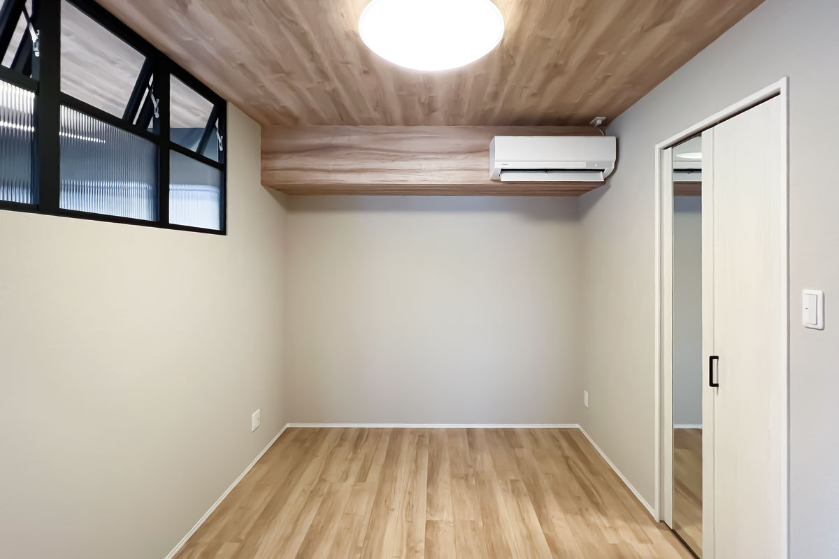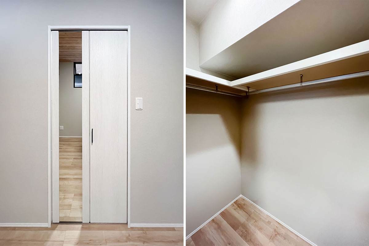 洋室には室内窓があるので、コンパクトながらもリビングとの一体感がありスペースを感じられる設計になっていました。来客時には、扉が閉められるのでプライベートとしっかりわけることができます。ウォークインクローゼットも備わっていました。
