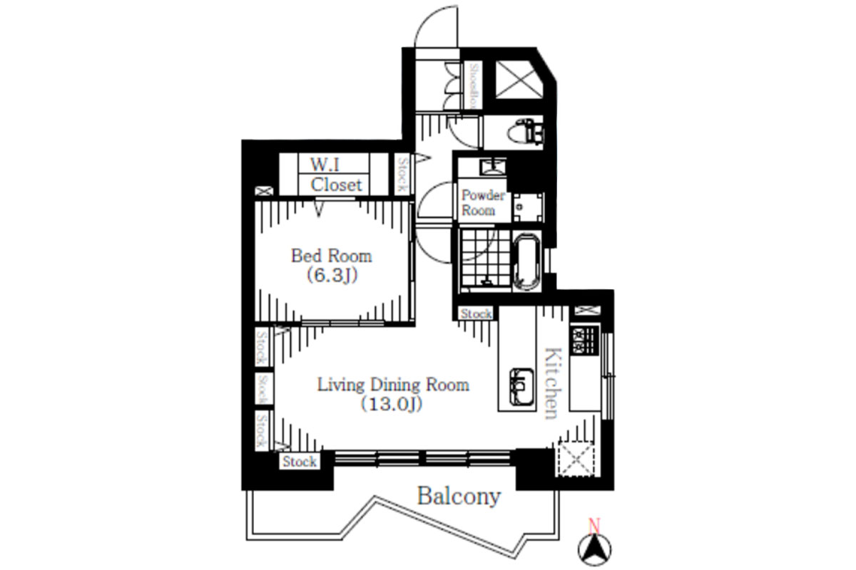 お部屋は8階、間取りは47.35㎡の1LDK。