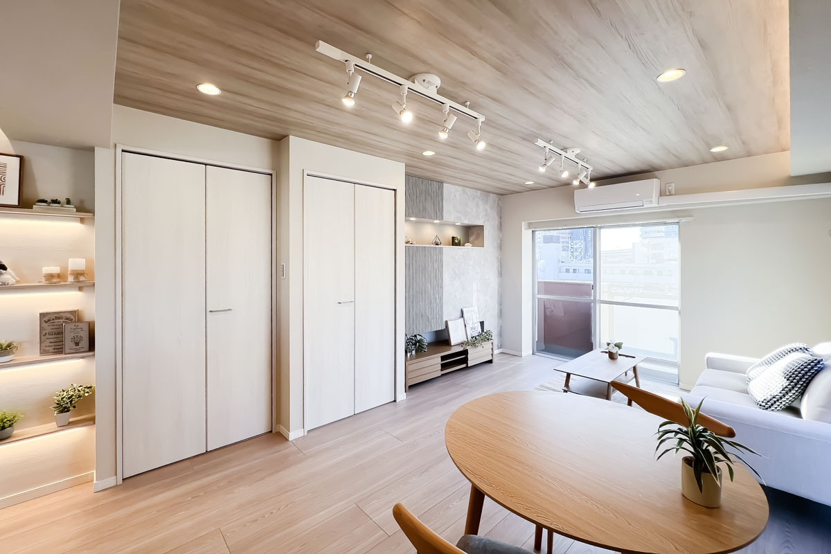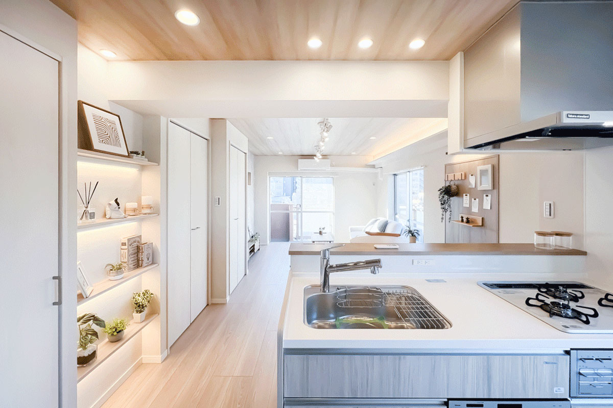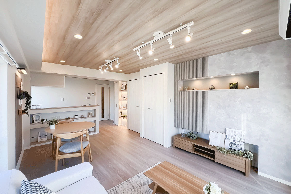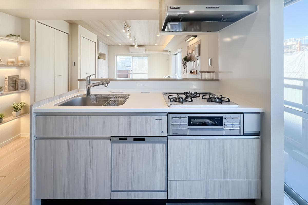 室内のリノベーションは、2025年11月に完了しています。システムキッチン、ユニットバス、トイレなどの水回りと、壁・天井クロス、フローリング、照明器具が一新され、新築同様に快適です。食洗機や浴室乾燥機能など、便利な設備も備わっています。
