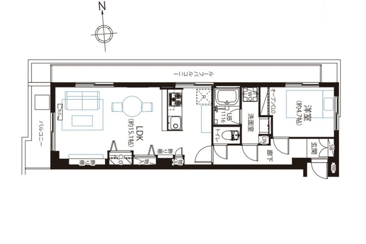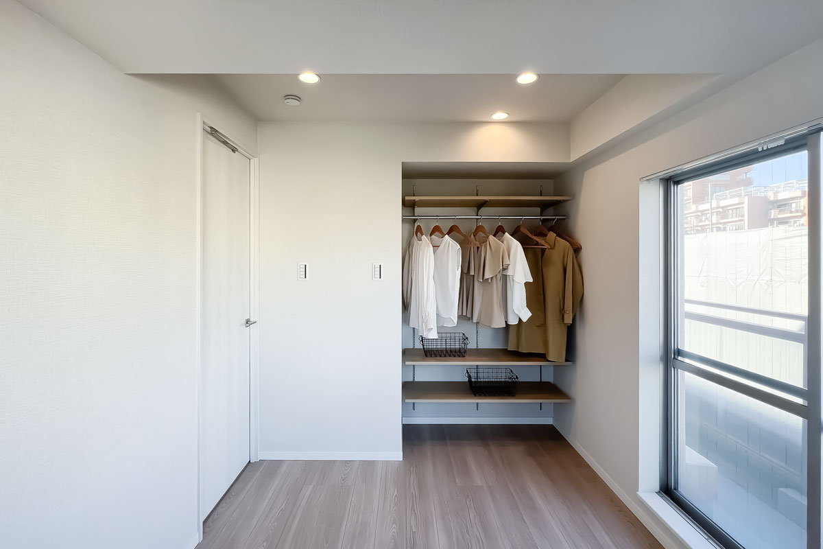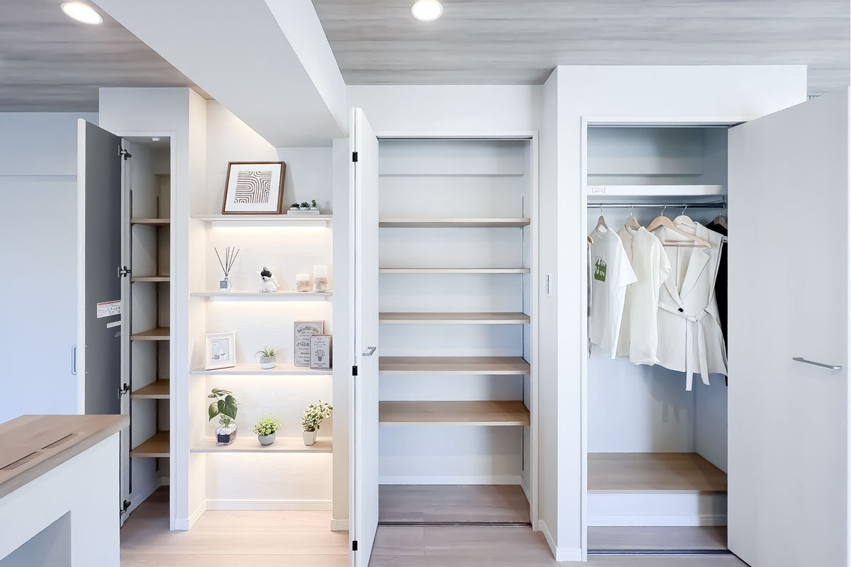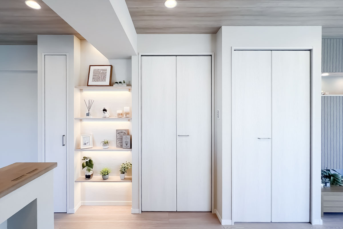 リビングには、クローゼットと飾り棚がたっぷり。洋室にはオープンクローゼット。