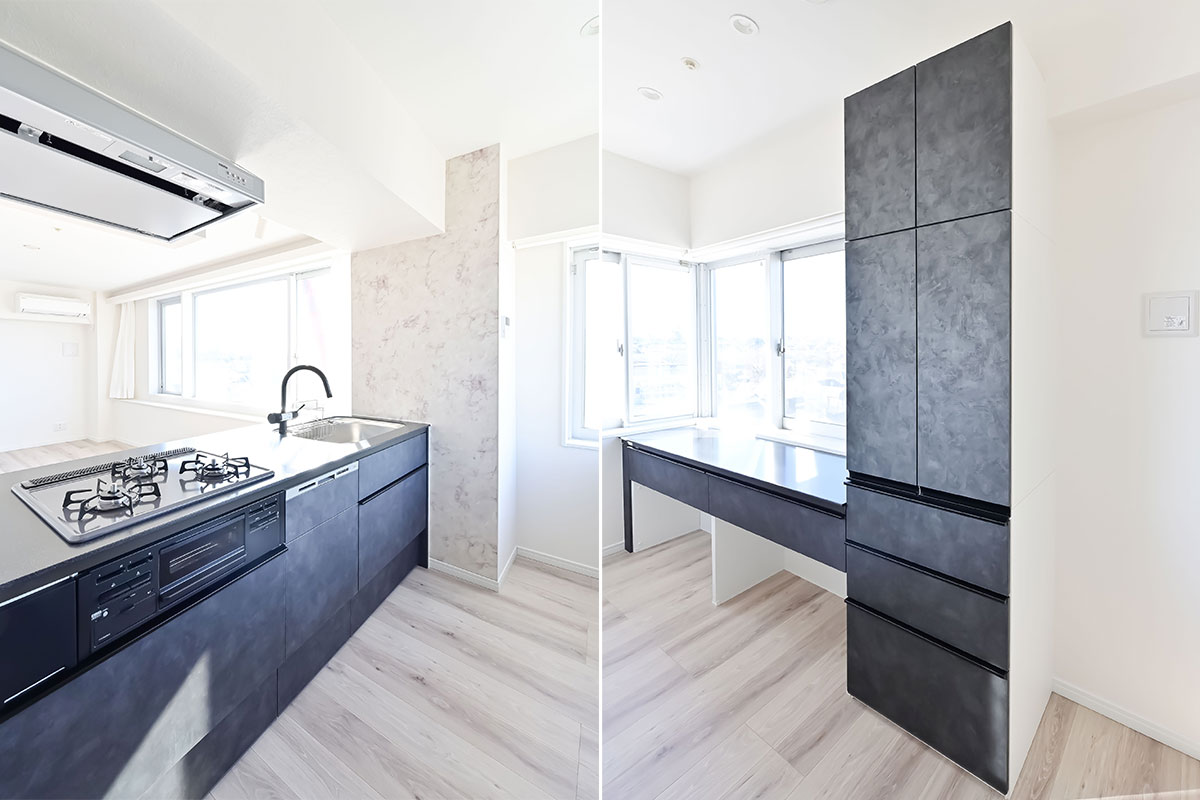 ユニットバス、システムキッチンなど水回りの交換、フローリングやクロスの貼り替えに加えて、インナーサッシの新設、外壁面・天井の一部に断熱処理を施すなど、高断熱リノベーションがおこなわれているところも特長です。