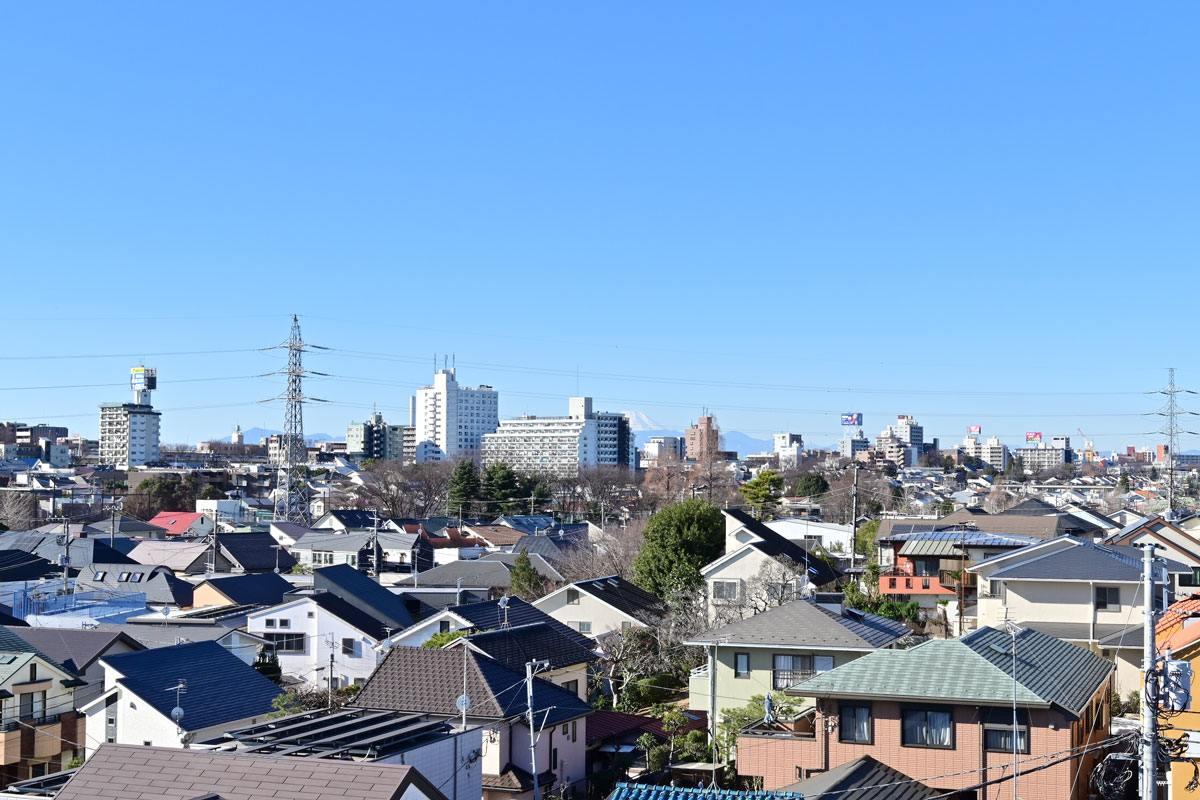 ルーフバルコニーからは、杉並の住宅街と、その先に丹沢の山並み、大きな建物に少し隠れていて残念ですが、富士山も眺めることができました。