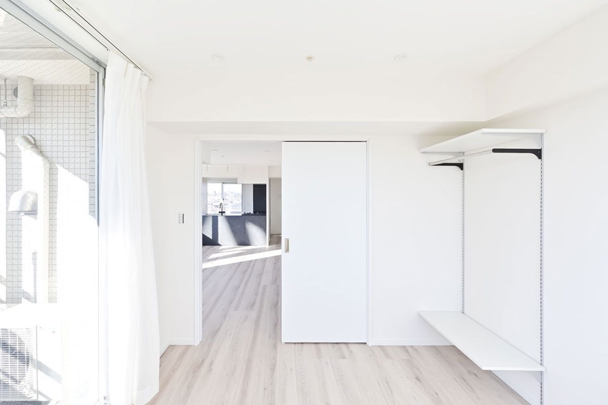 間取りは3LDK、白基調のカラーリングにダークなアクセントカラーが映える、スタイリッシュな印象の居住空間になっています。