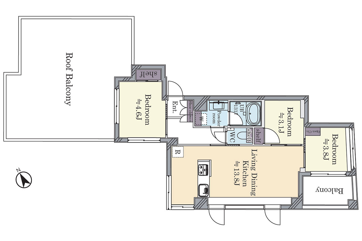 周りの建物からも距離があるため、お天気の良い日には、ルーフバルコニーでゆっくりと過ごす時間を持つことができそうです。