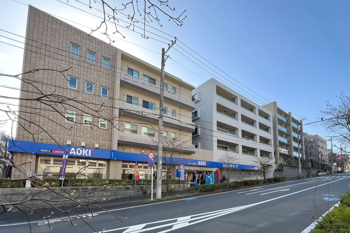 今回ご紹介のマンションへは、たまプラーザテラスをぬけ、カルディ横のエレベーターを降りると駅前の通りに出ることができます。郵政宿舎を左に曲がり、美くしが丘東小学校を右に曲がり真っすぐ進むと到着です。上り坂がありますが、毎日負担になるようなきつい坂ではないように感じました。