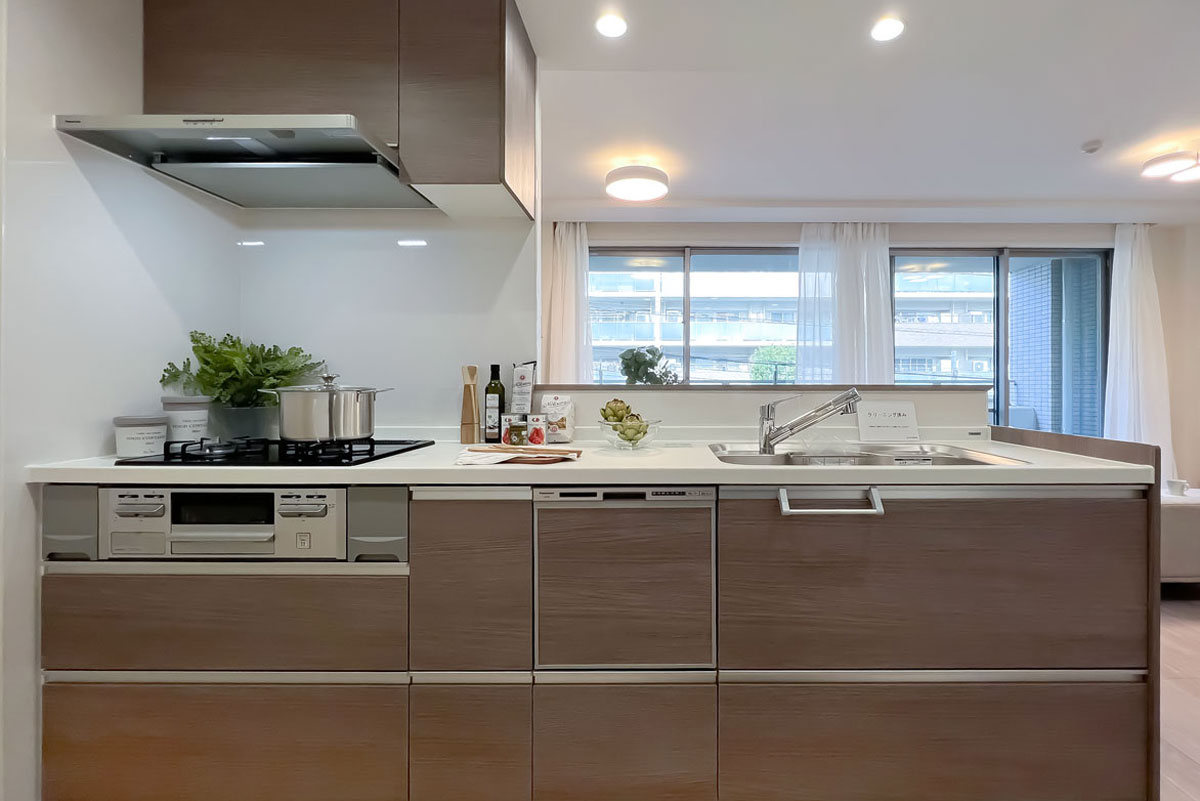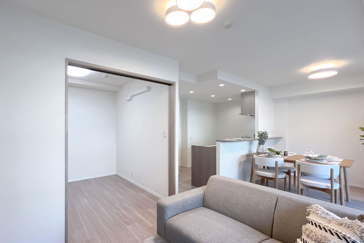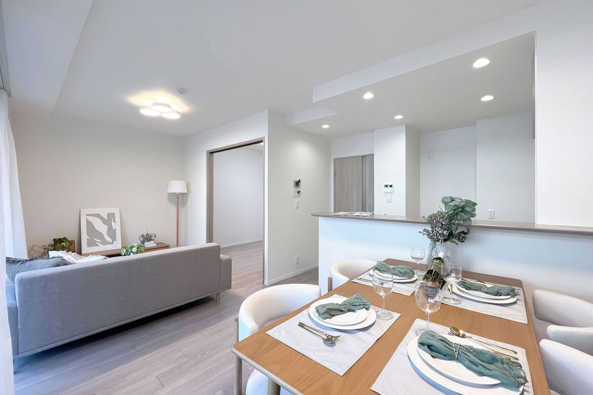 室内は、2025年6月にリノベーション工事が完了しています。設備としては、食器洗浄乾燥機付きのシステムキッチン、浴室乾燥機能付きのバスルームなど、生活を便利にしてくれる設備が整っています。フローリングやクロスも張り替えられているので、新築同様快適に暮らすことができそう。