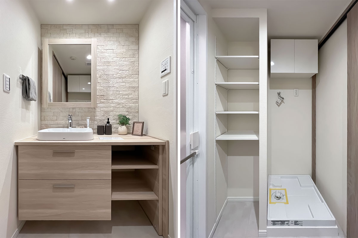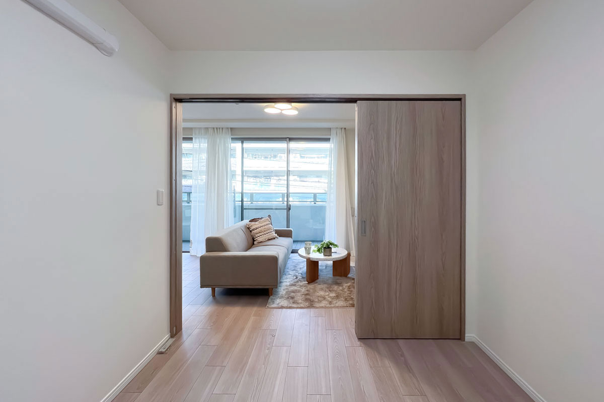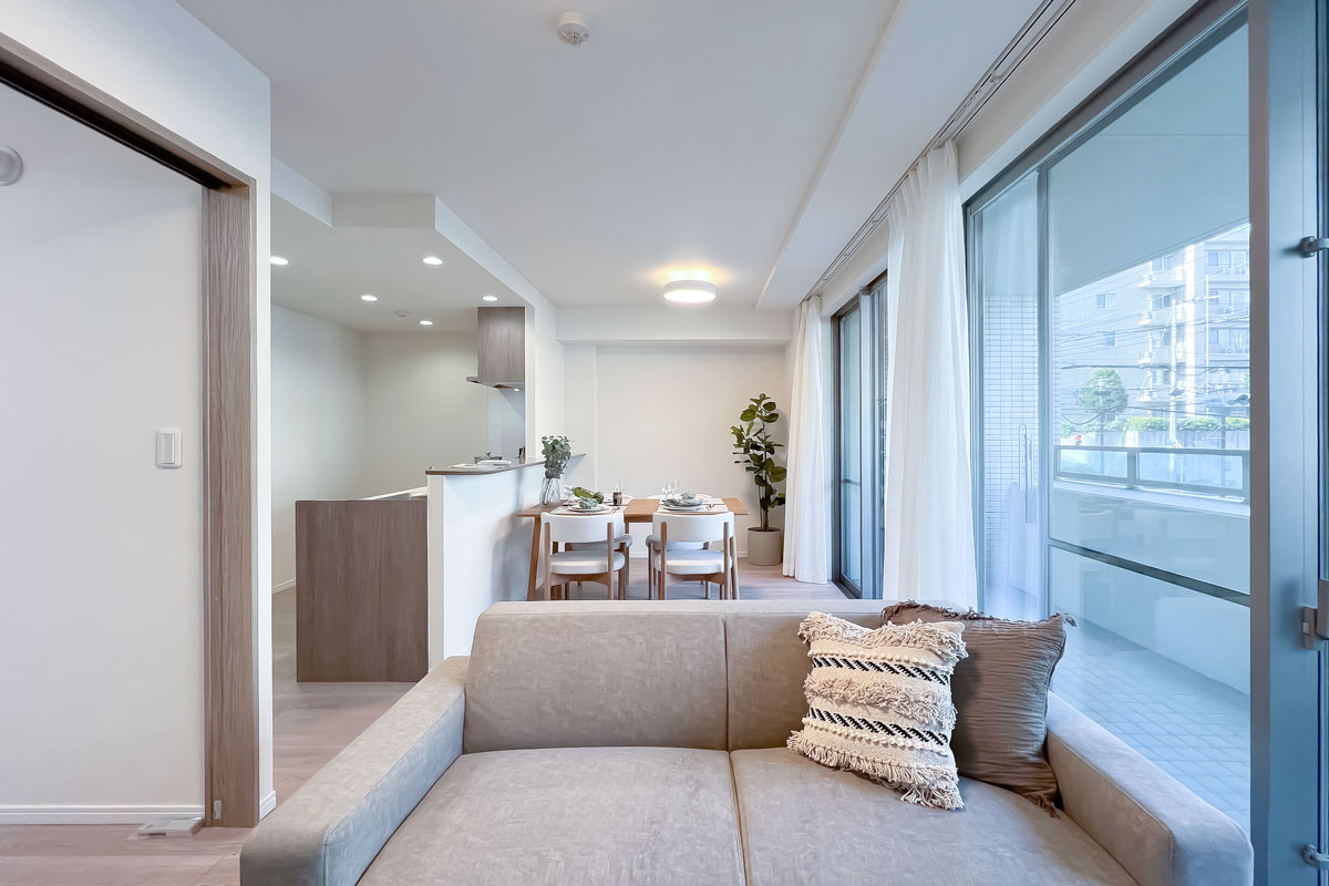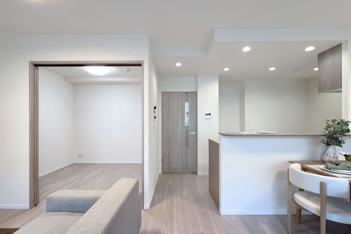 室内は、2025年6月にリノベーション工事が完了しています。設備としては、食器洗浄乾燥機付きのシステムキッチン、浴室乾燥機能付きのバスルームなど、生活を便利にしてくれる設備が整っています。フローリングやクロスも張り替えられているので、新築同様快適に暮らすことができそう。