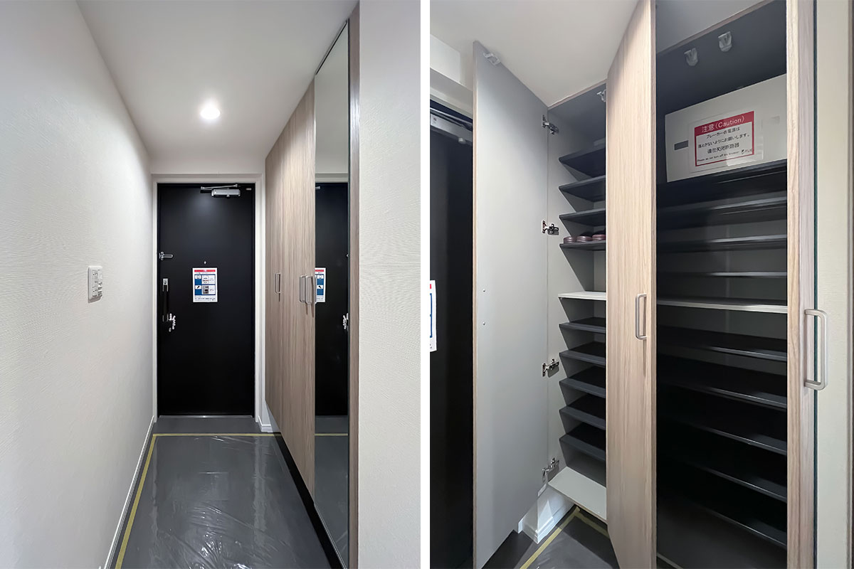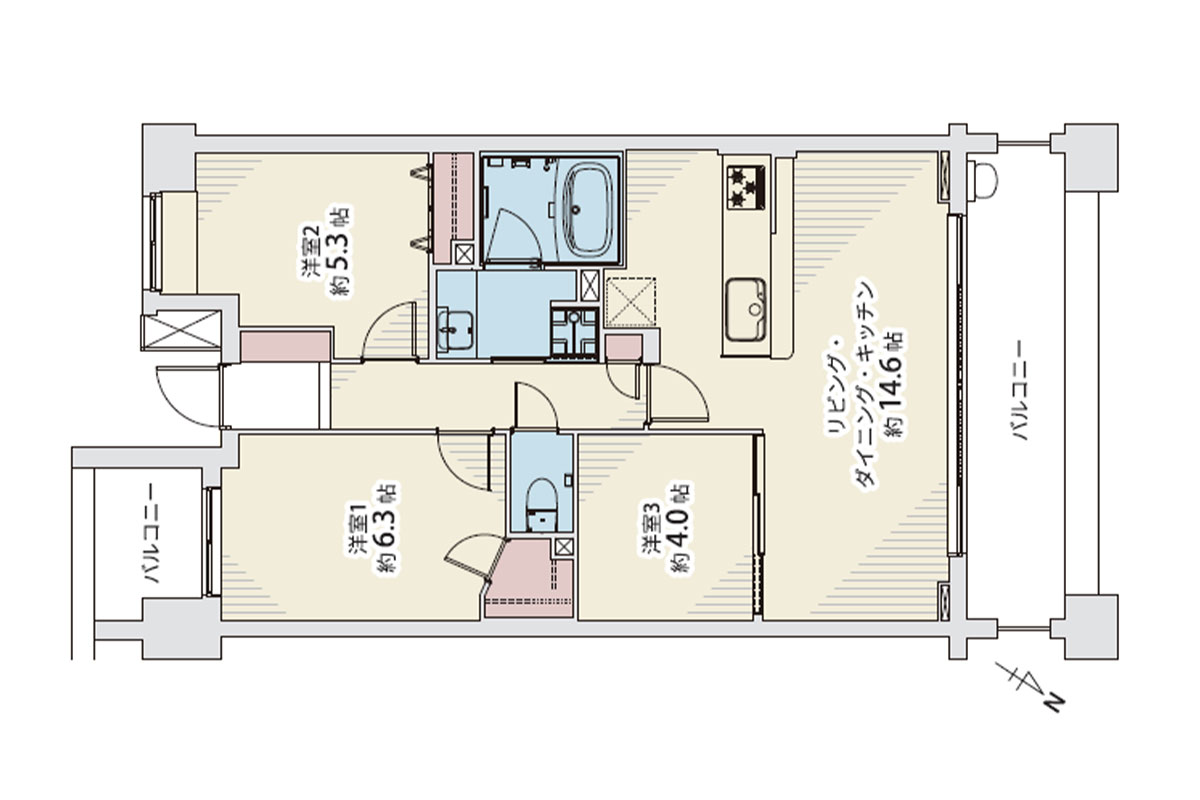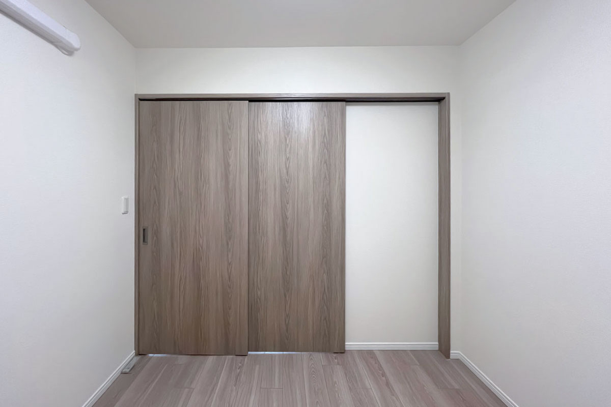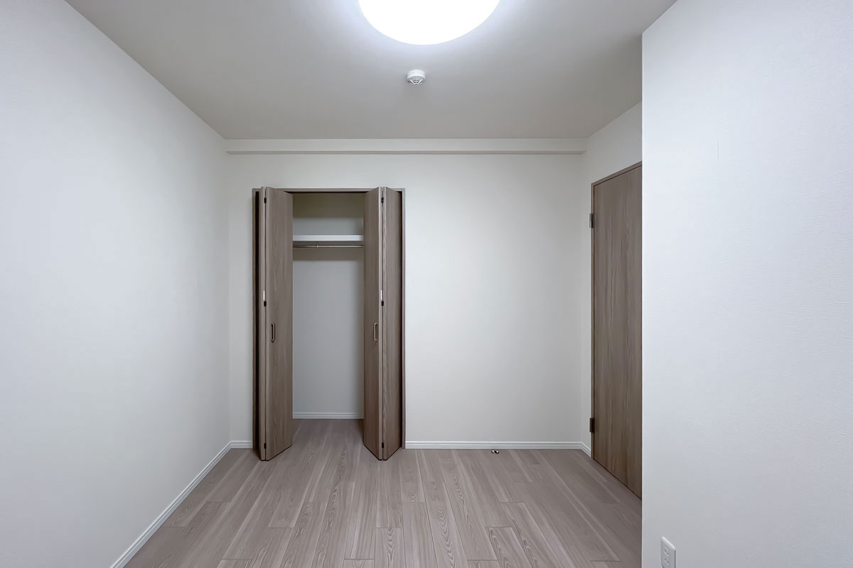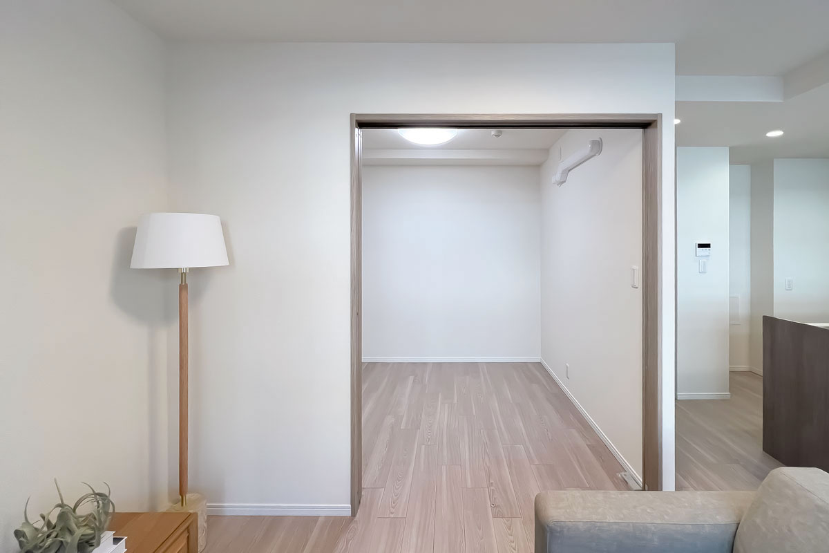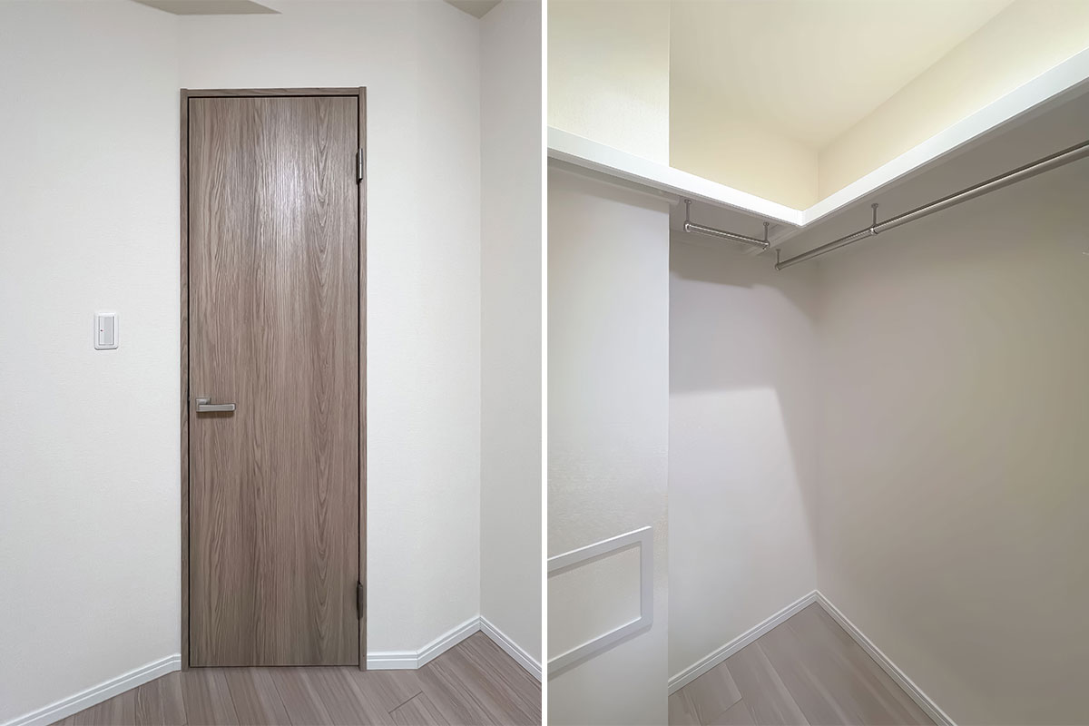 間取りは3LDK。玄関左右に洋室、真ん中に水回り、その先にリビングとなります。玄関横の洋室は、空間がしっかり確保されており、クローゼットも備わっていました。ウォークインクローゼットのある洋室には、バルコニーもあるため、リビングと合わせて開ければ換気がしっかりできそうですね。